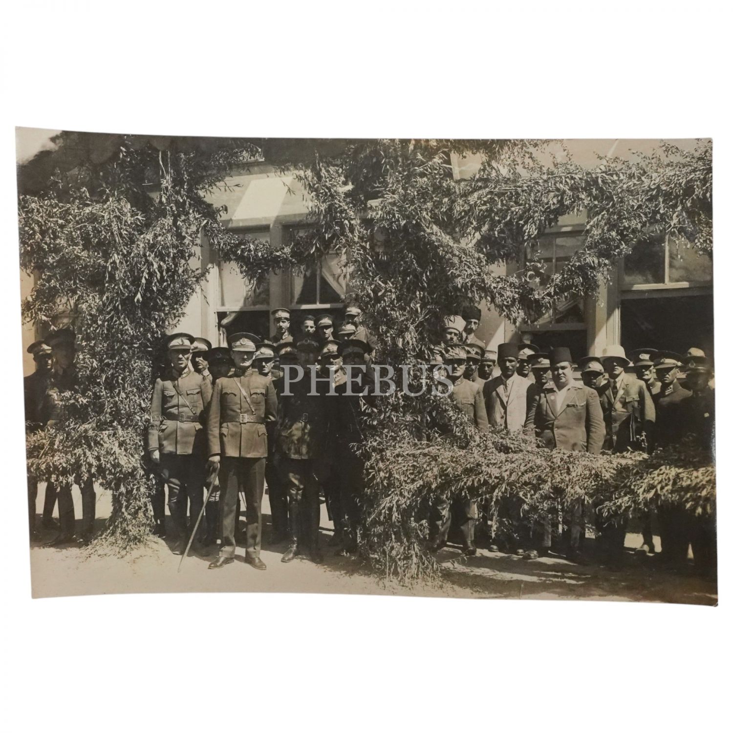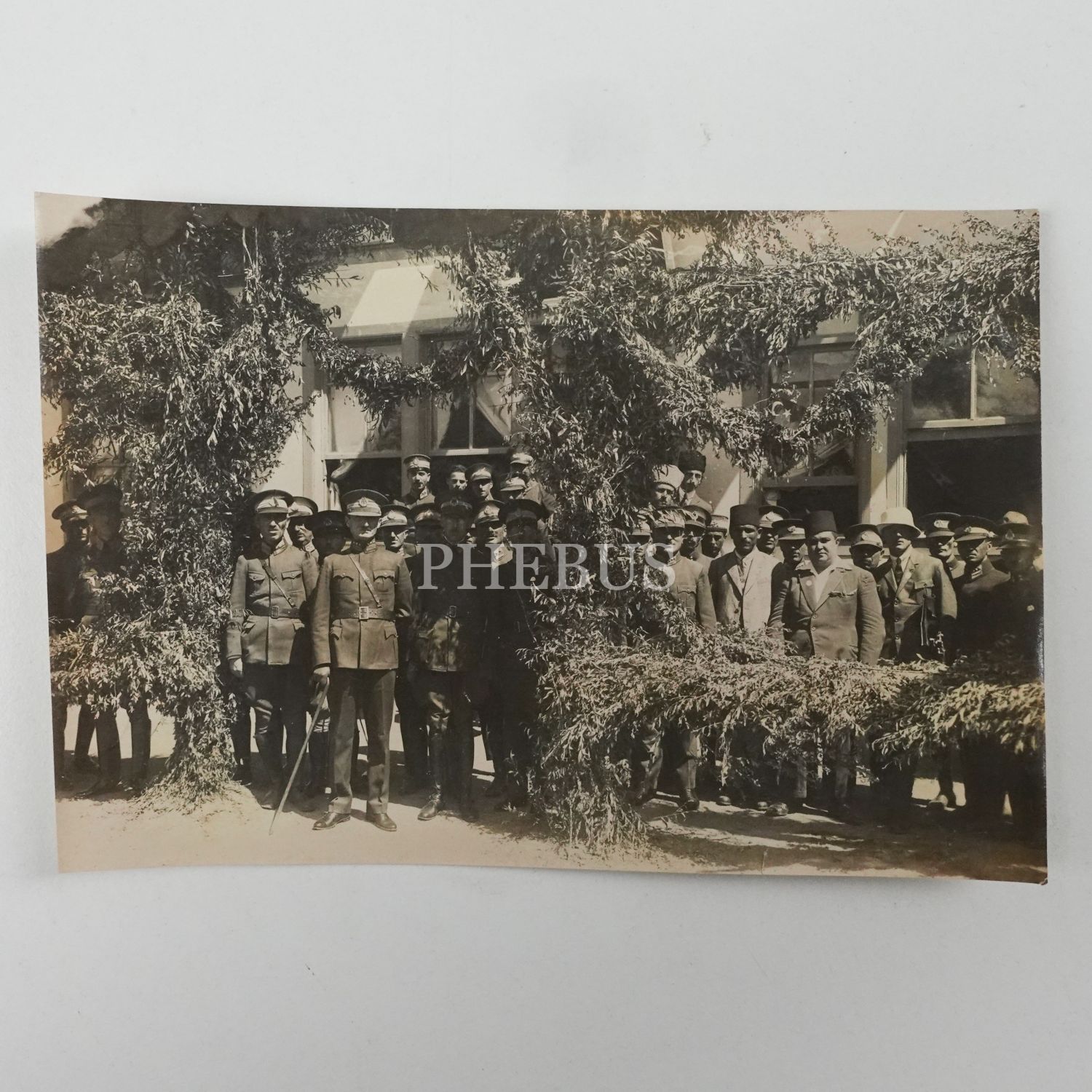 Bir grup Türk subayının fesli sivillerle birlikte görüldüğü hatıra fotoğrafı, 17x11 cm...