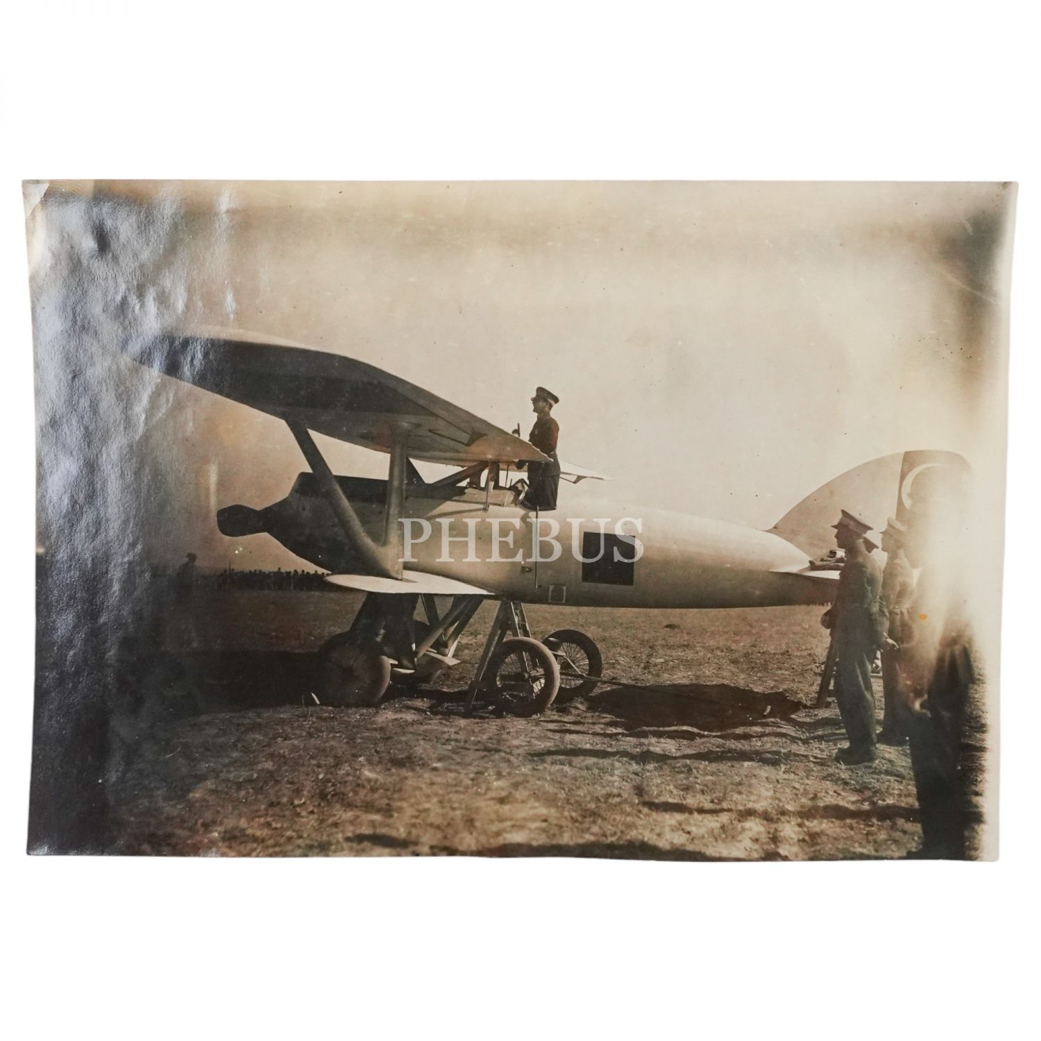 Ay-yıldız kuyruklu ve Osmanlıca numaralı bir Türk uçağının içinden konuşma yapan subay, 18x12 cm...