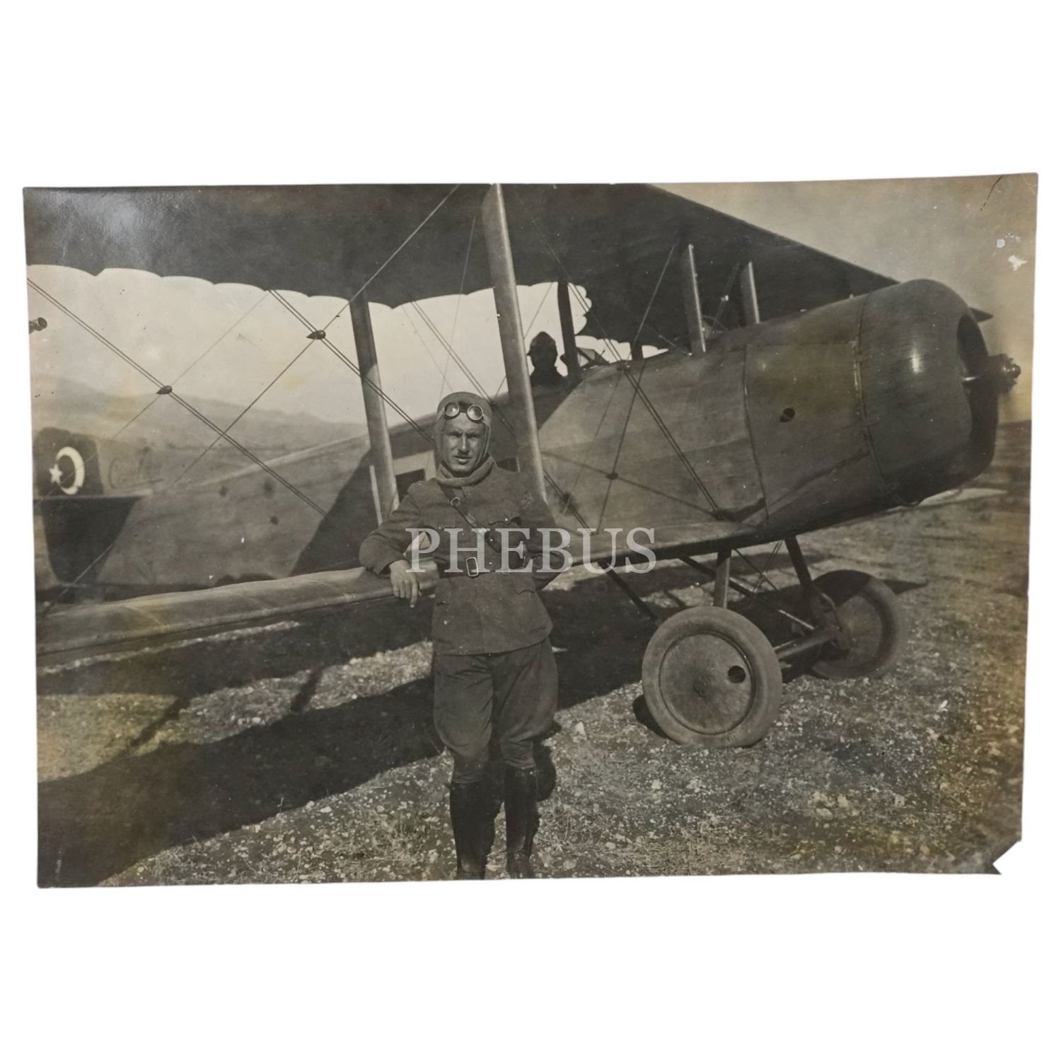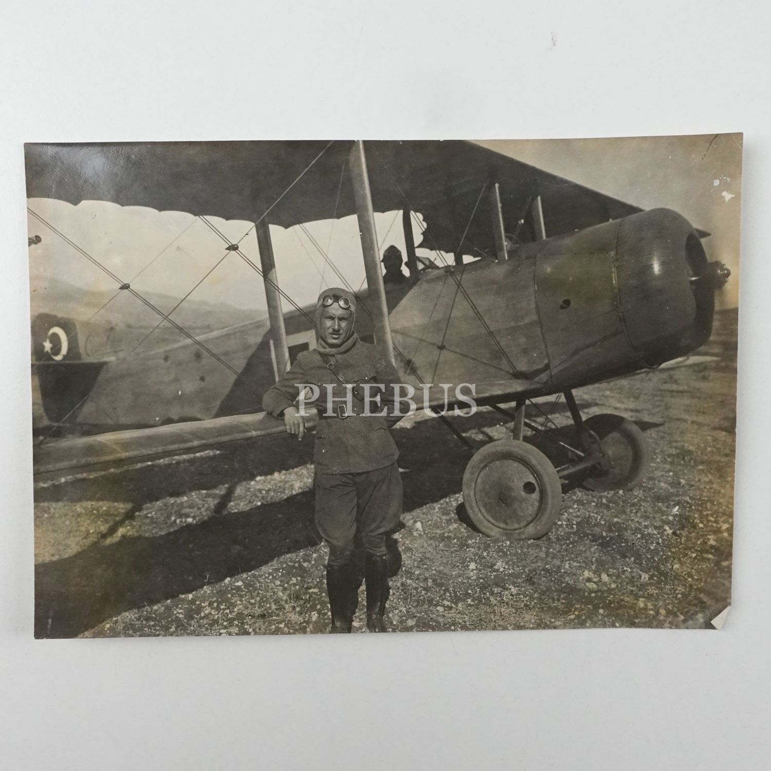 Ay-yıldız kuyruklu bir Türk uçağı önünde tam teçhizatlı bir pilot, 16x12 cm...