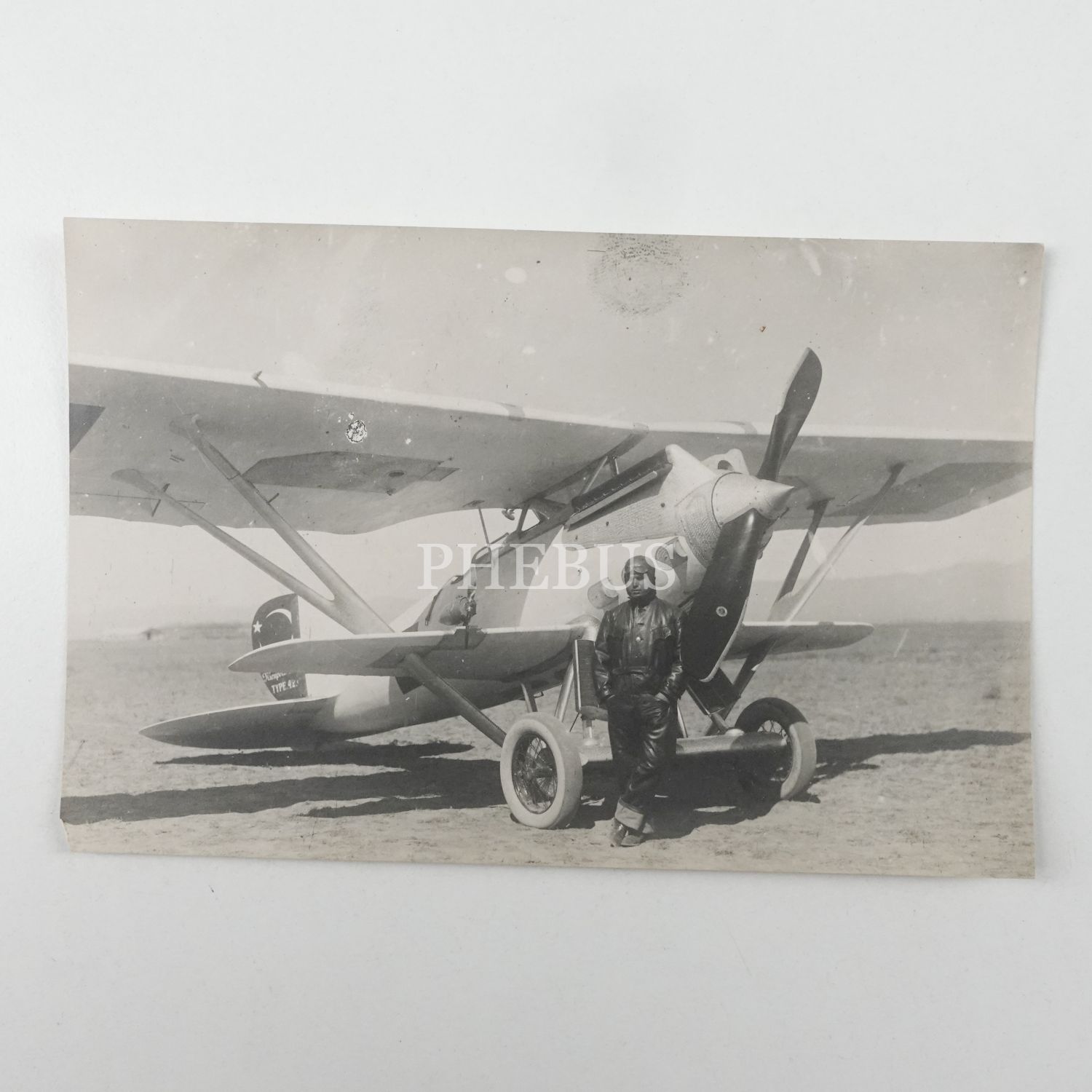 Enver Paşa ile Naciye Sultan´ın oğlu Ali Enver Akoğlu, pilotluk eğitimi gördüğü yıllarda bir savaş uçağının önünde, 14x9 cm...