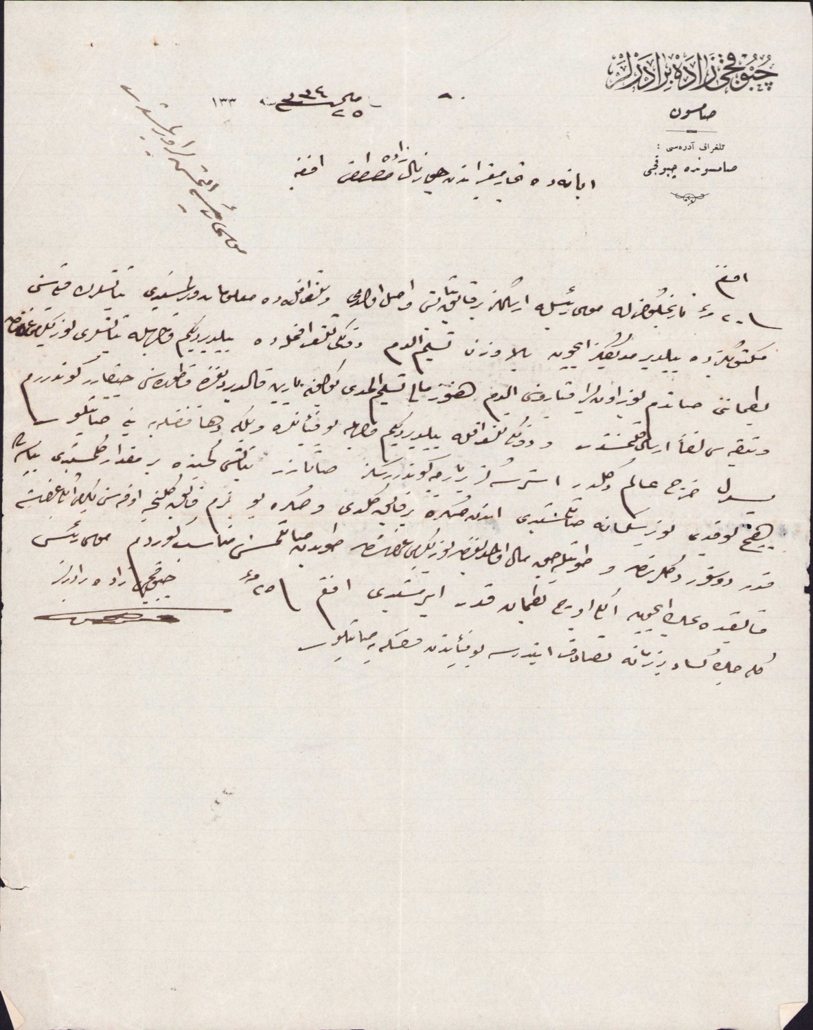 Osmanlıca Çubukçu Zade Biraderler Samsun antetli doküman, 20x28 cm
