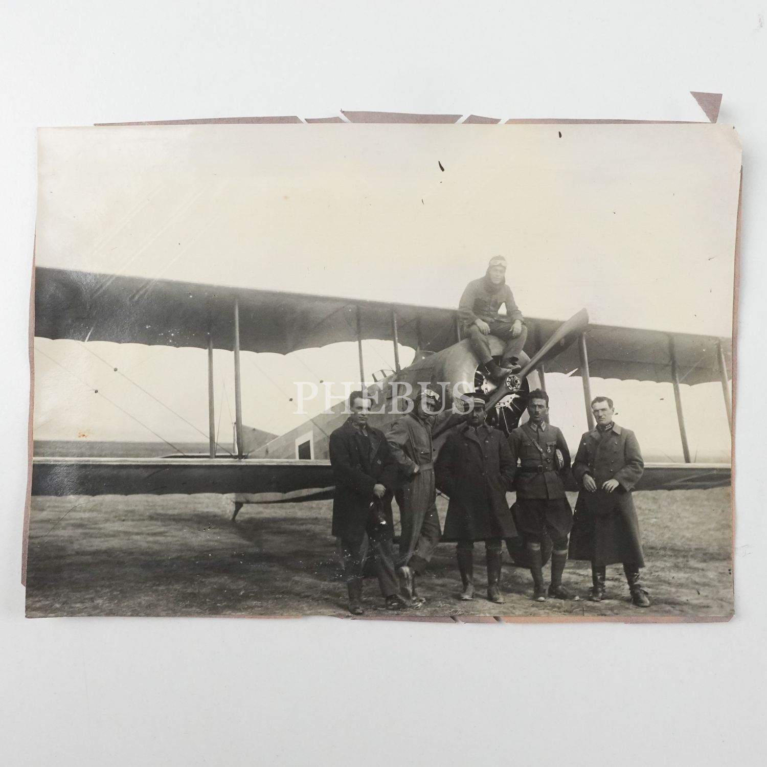 Bir Türk uçağı önünde pilotlar ve subaylar, 17x12 cm...