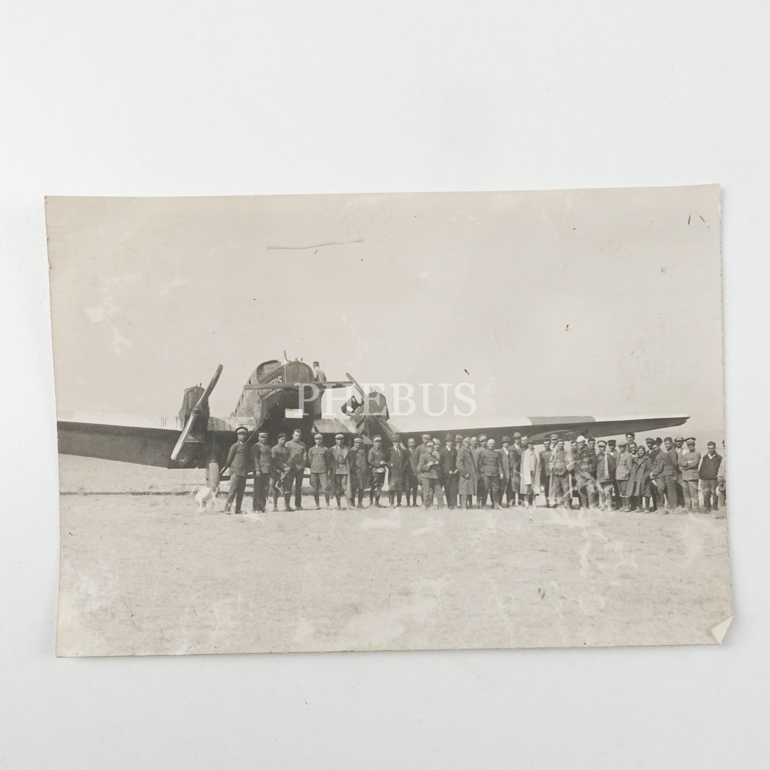 Junkers model yolcu uçağı önünde subaylar ve sivil vatandaşlar, 13x9 cm...