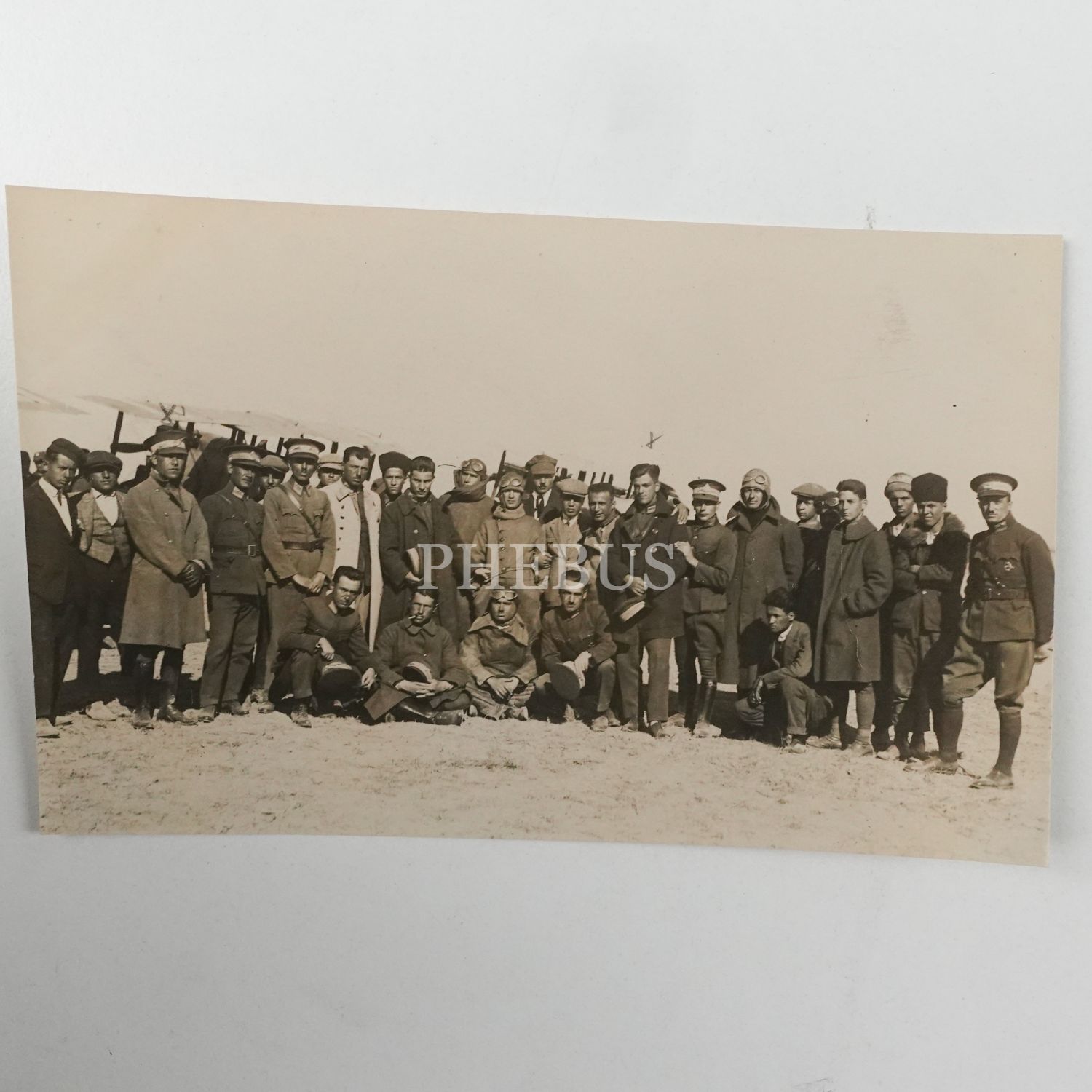 Aralarında Enver Paşa ile Naciye Sultan´ın oğlu Ali Enver Akoğlu, Ferruh Şahinbaş, Muzaffer Göksenin, Hidayet Göksel gibi tanınmış asker ve diplomatların yer aldığı grubun, hava üssünde düzenlenen bir etkinlik günü çekilmiş toplu hatıra fotoğrafı, 14x9 cm...