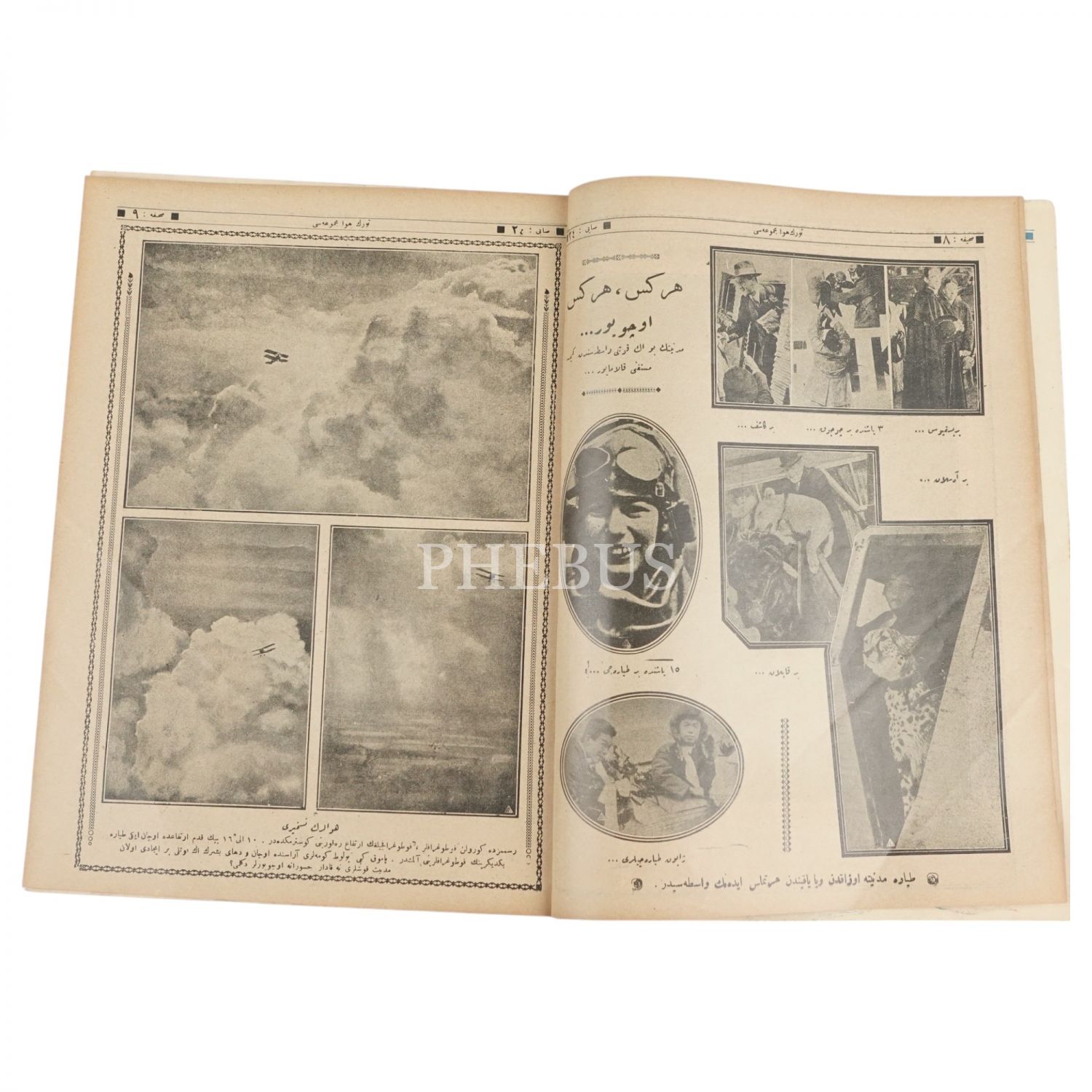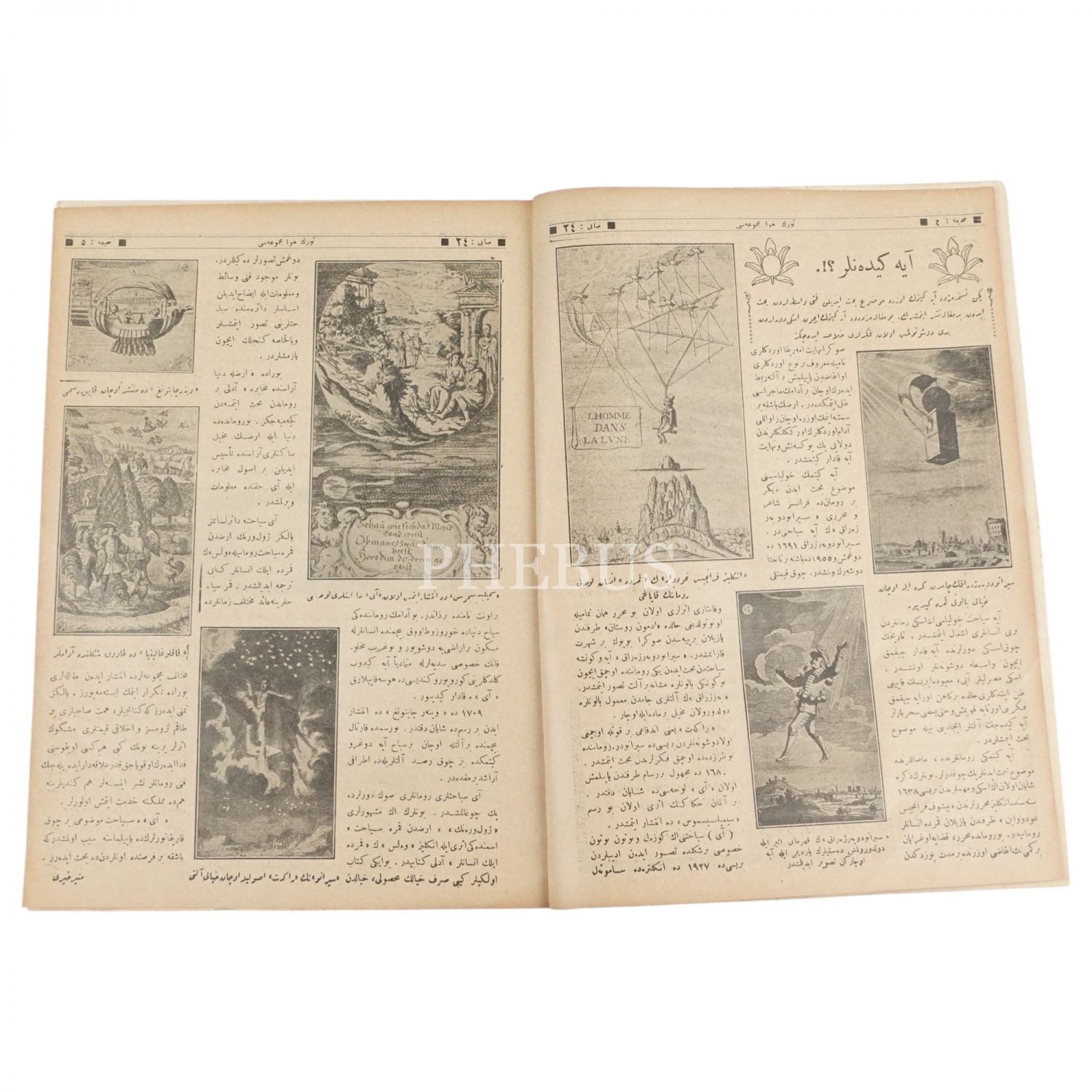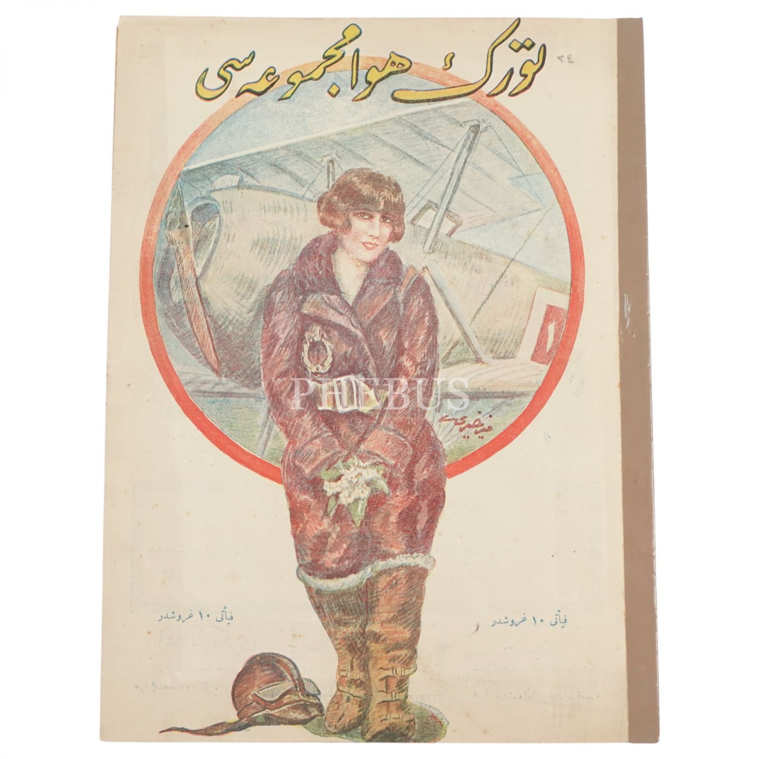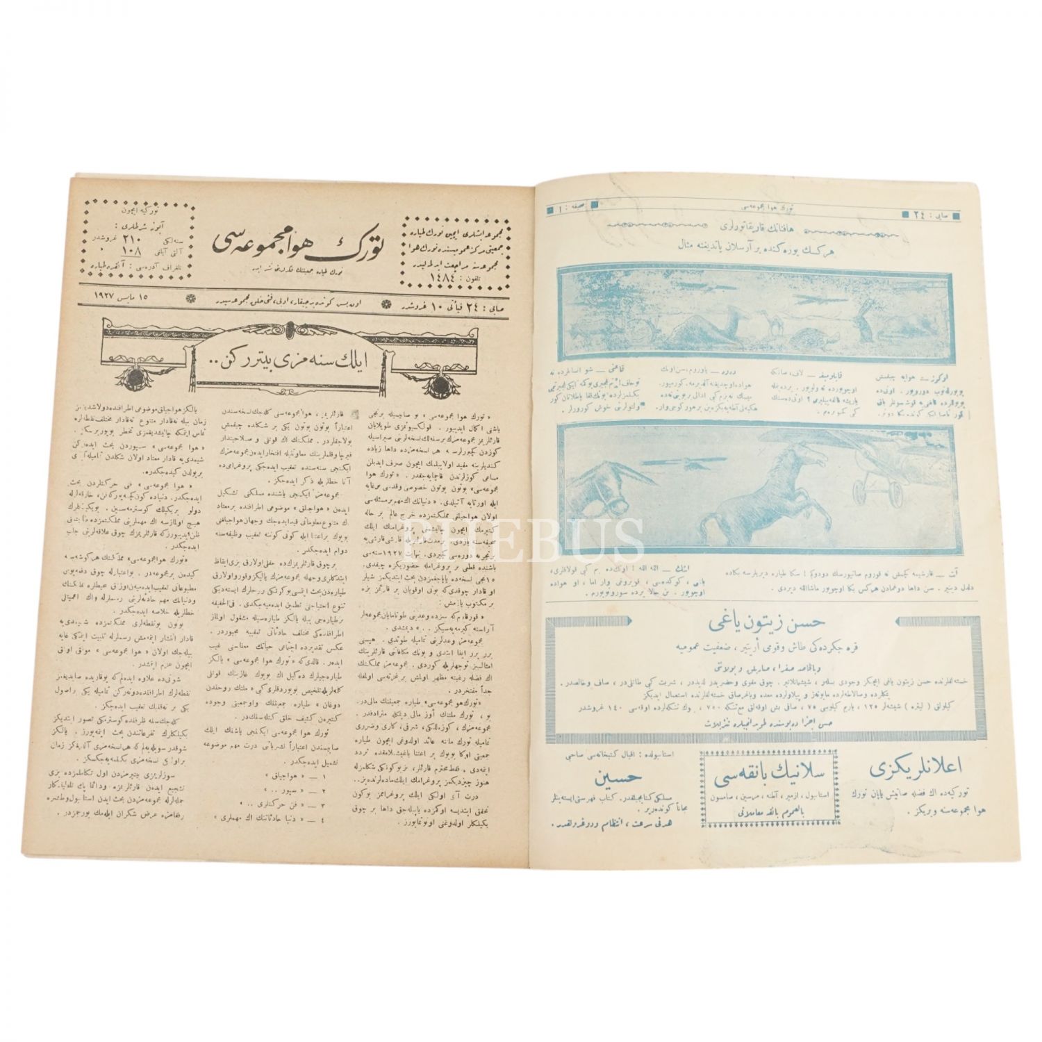 Bir kadın pilot çizimine kapağında yer veren TÜRK HAVA MECMUASI´nın 15 Mayıs 1927 tarihli 24. sayısı, 23x31 cm...