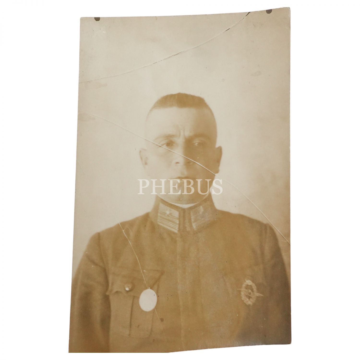 İstiklal Madalyalı ve havacı bröveli bir Türk subayının stüdyo hatıra fotoğrafı, 9x14 cm...
