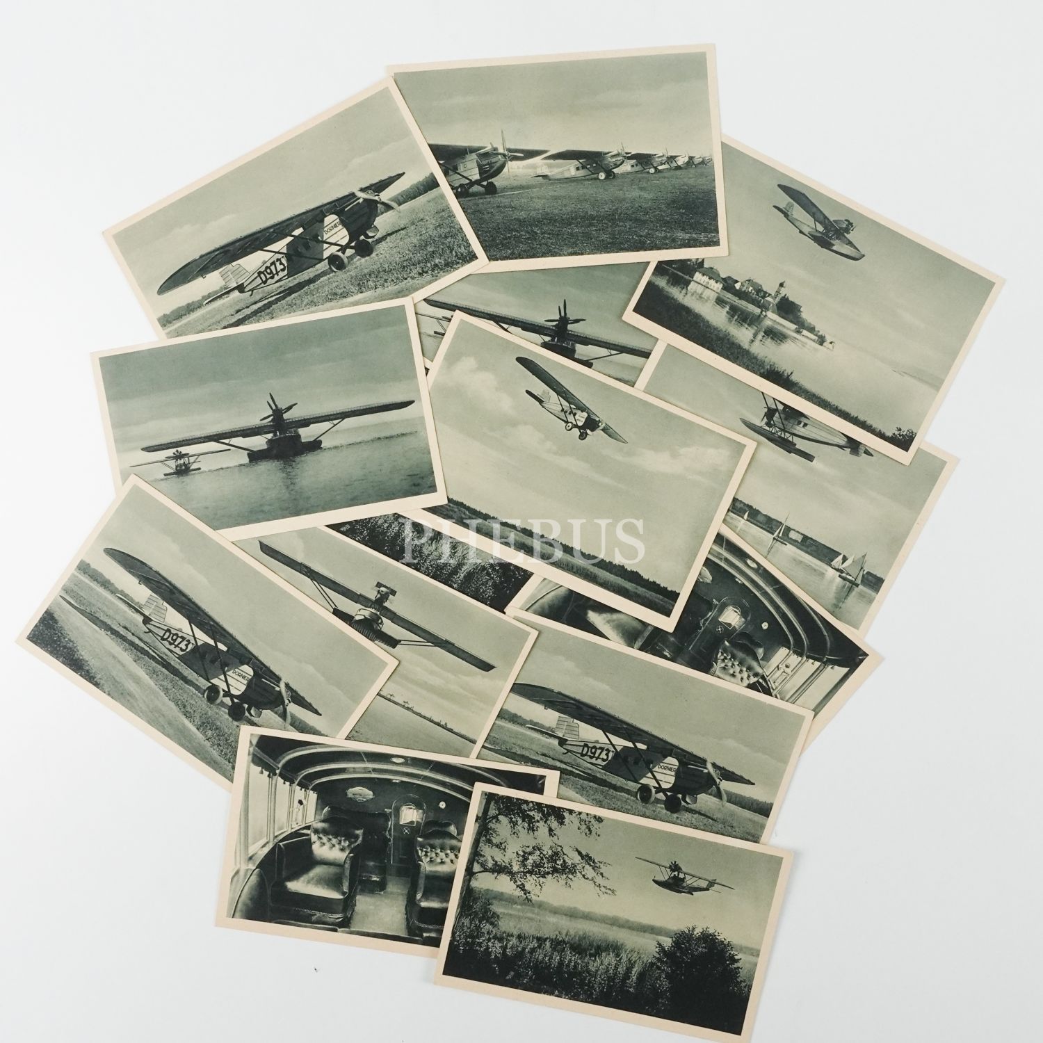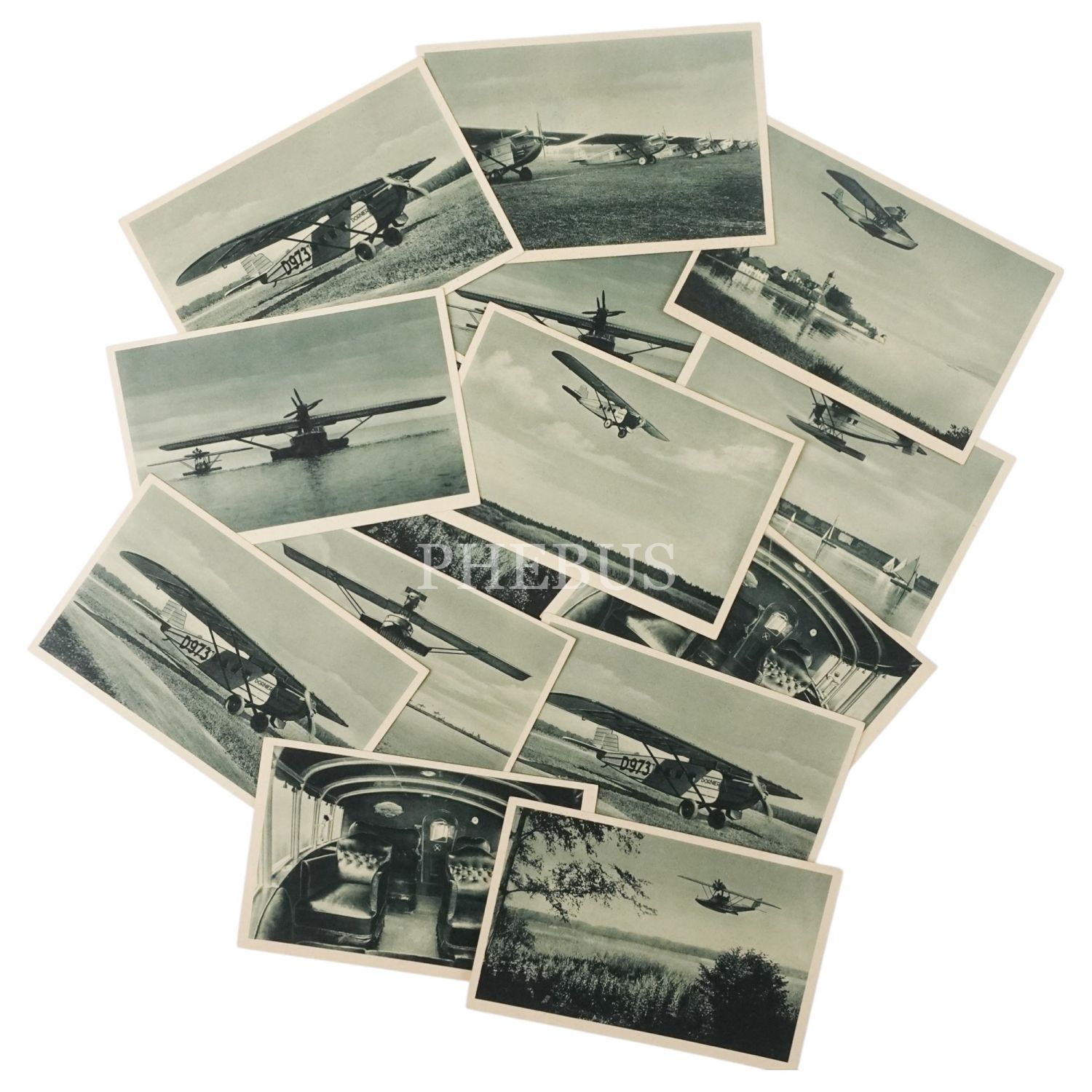 Hem sivil hem de askeri pazarlar için birçok uçak üreten Almanya merkezli uçak üreticisi Dornier´in ürettiği uçaklardan bir kısmının görüldüğü 14 adet tanıtım kartpostalı, 14x9 cm...