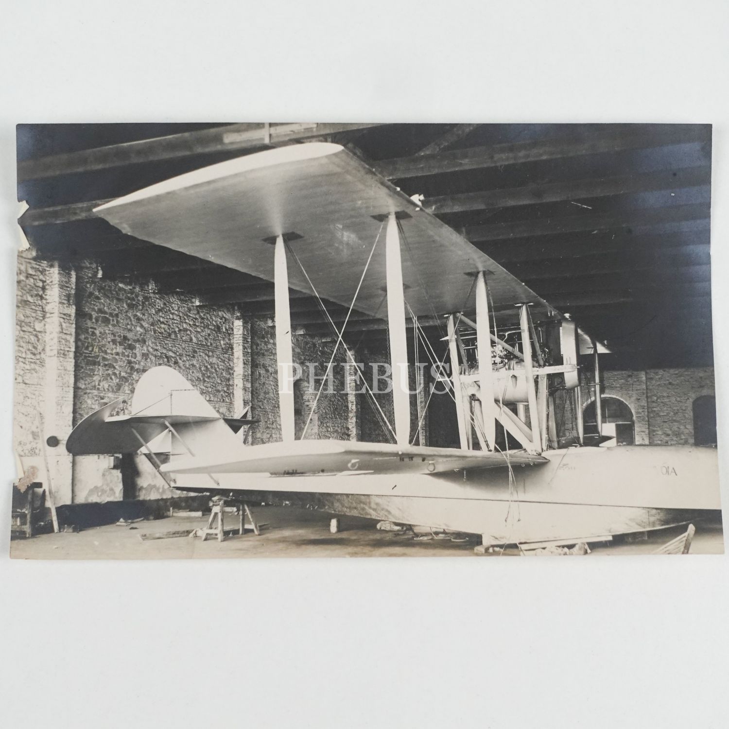 Hangar içinde bakıma alınan Savoia model İtalyan deniz uçağı, 15x9 cm...