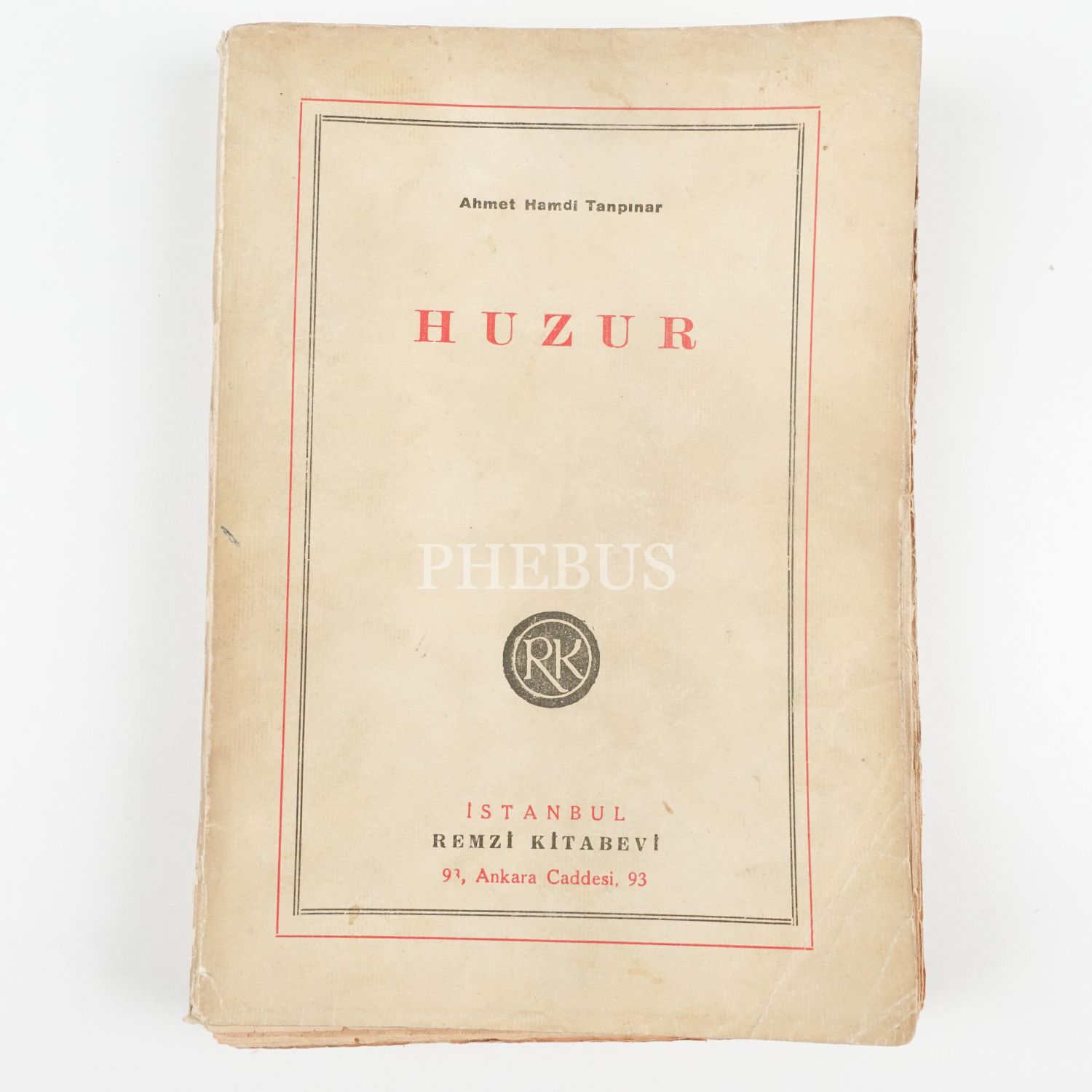 HUZUR, Ahmet Hamdi Tanpınar, 1949, Remzi Kitabevi, 377 sayfa, 14x20 cm...