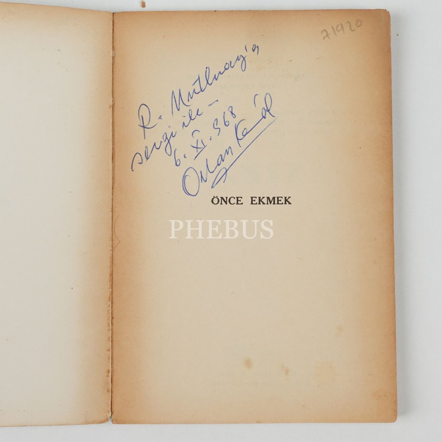 "R. Mutluay´a sevgi ile." ithafıyla, 6 Kasım 1968 tarihinde imzalanmıştır.