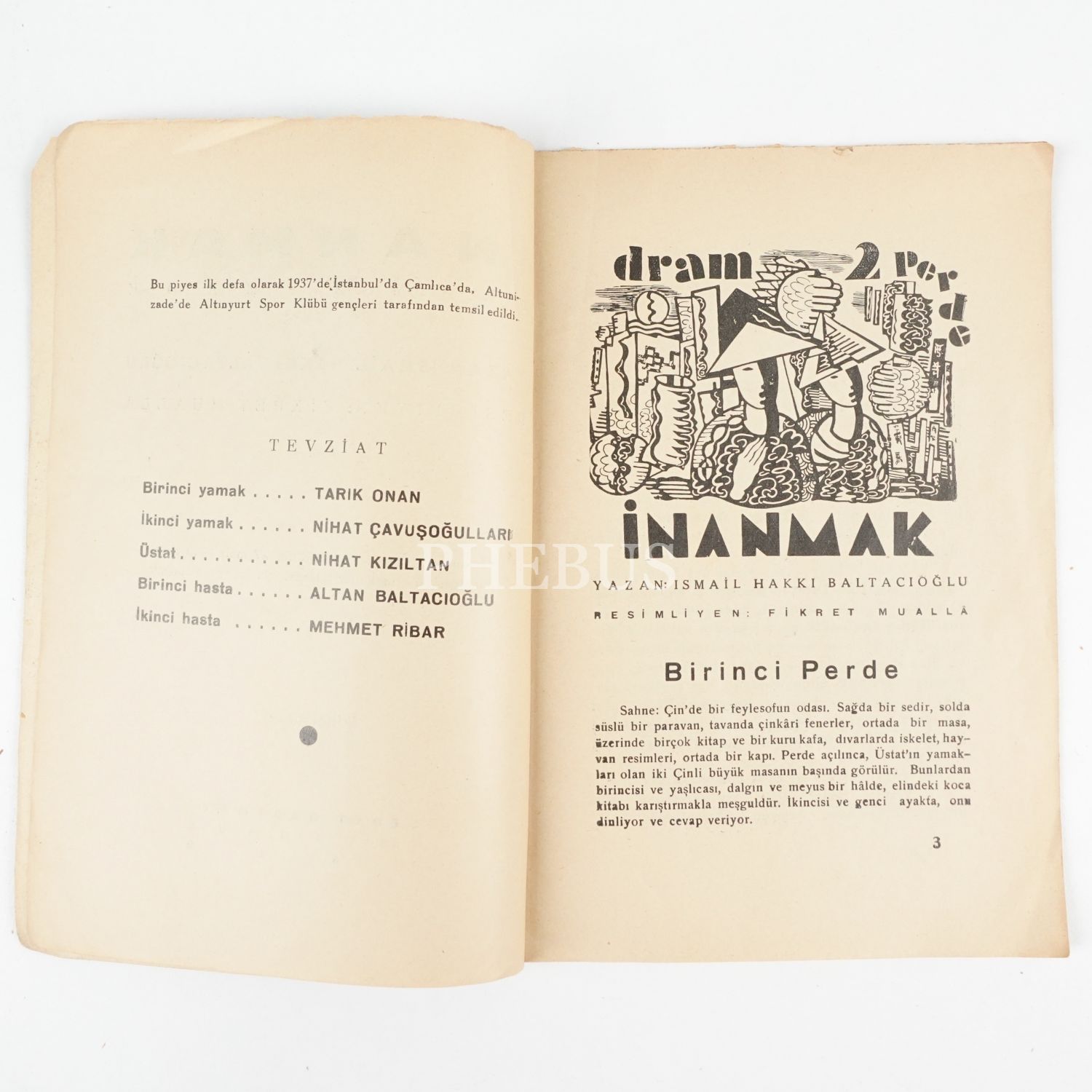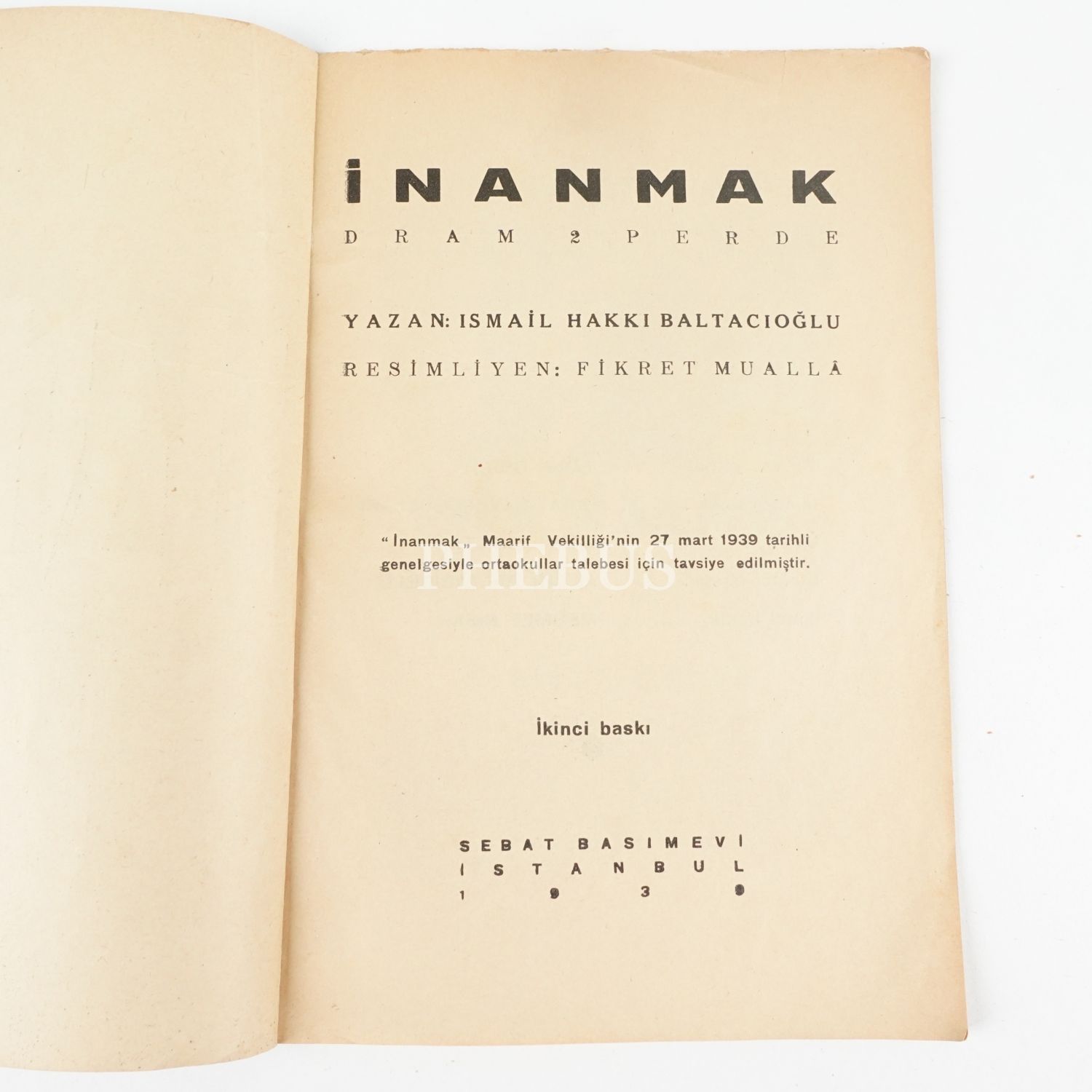 İNANMAK (Dram - 2 Perde), İsmail Hakkı Baltacıoğlu, 1939, Sedat Basımevi, 22 sayfa, 14x20 cm...