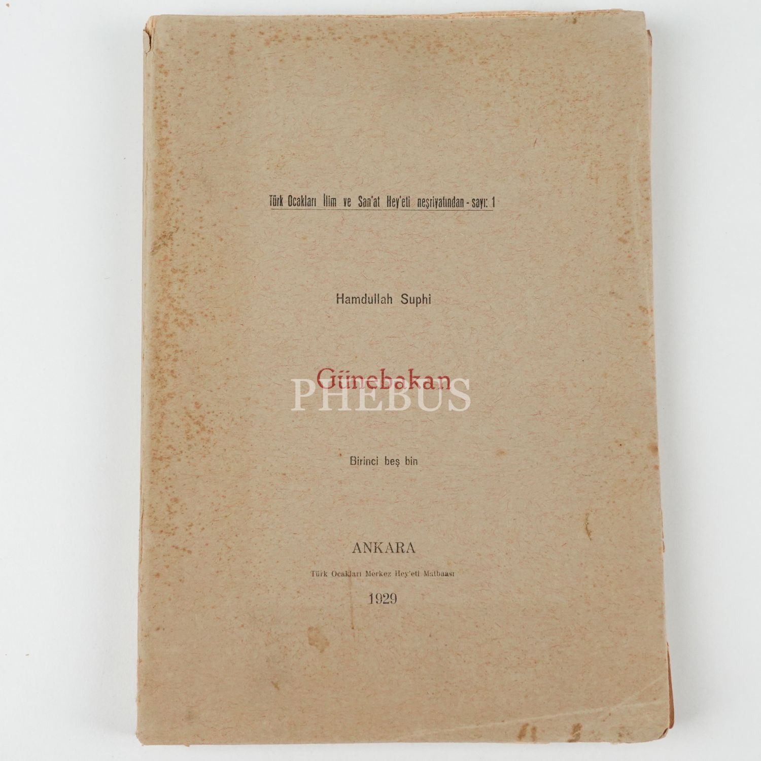 GÜNEBAKAN, Hamdullah Suphi, 1929, Türk Ocakları Merkez Hey´eti Matbaası, 213 sayfa, 17x24 cm...