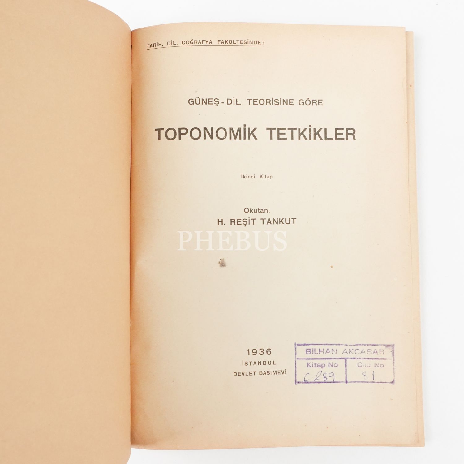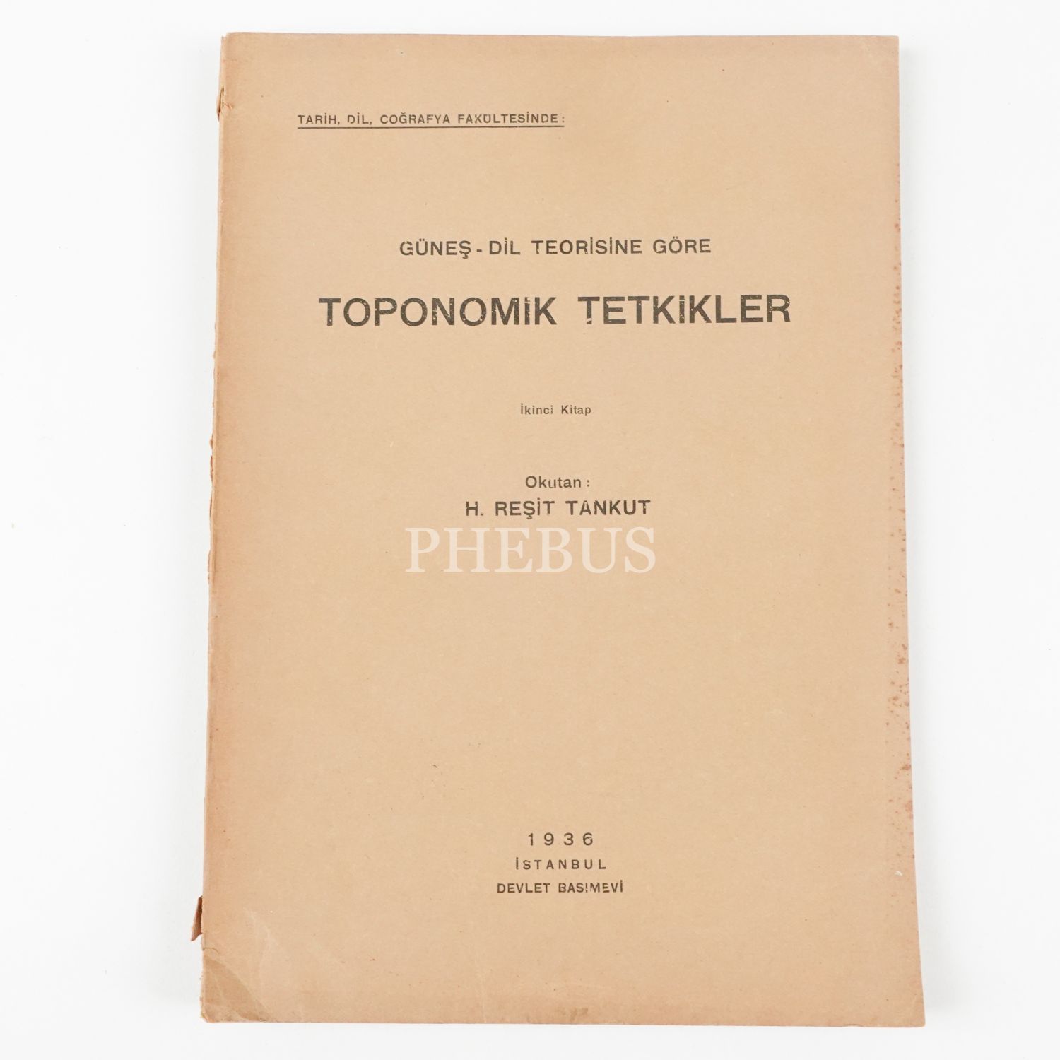 GÜNEŞ-DİL TEORİSİNE GÖRE TOPONOMİK TETKİKLER (İkinci Kitap), H. Reşit Tankut, 1936, Devlet Basımevi, 148 sayfa, 17x24 cm...