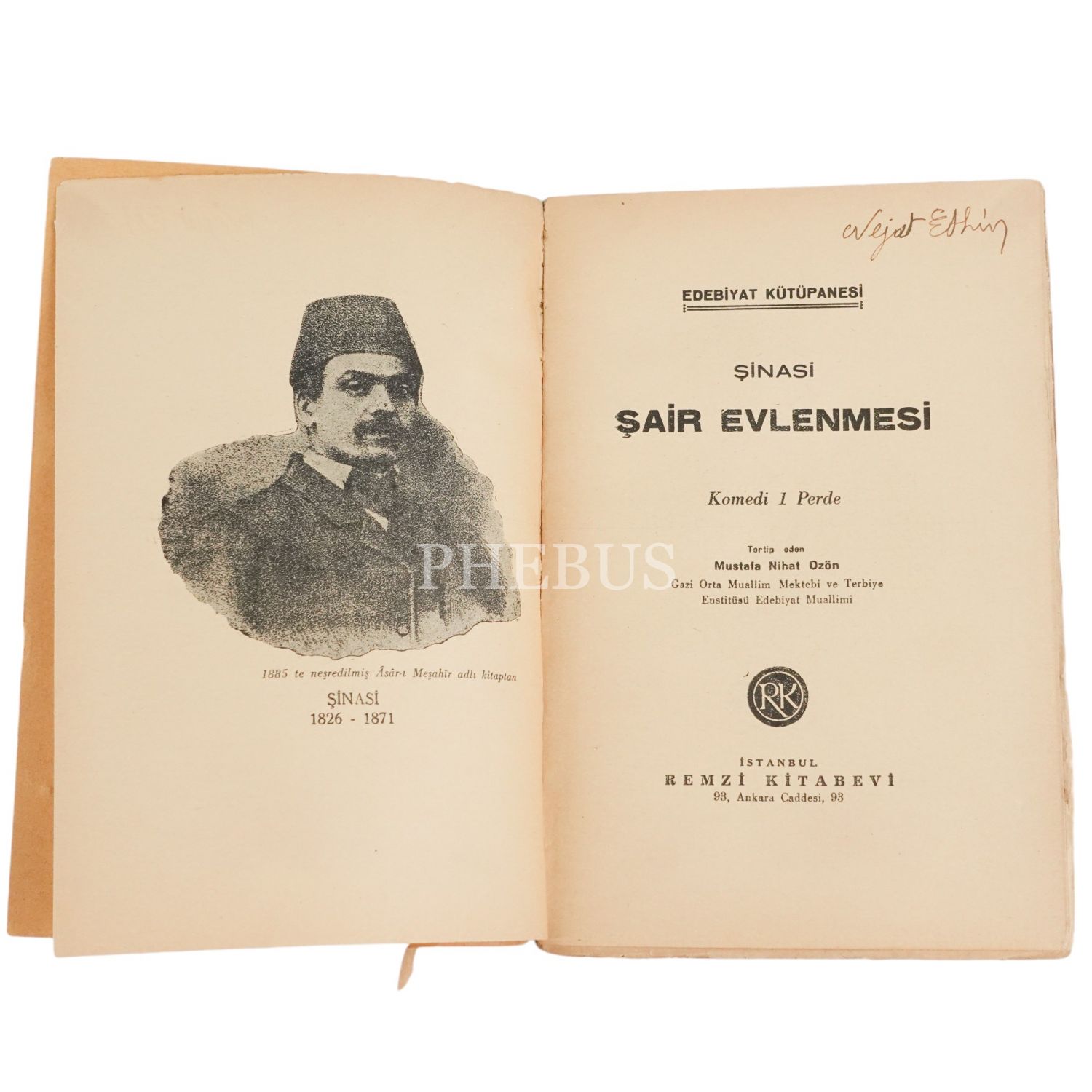 ŞAİR EVLENMESİ, Şİnasi, (tertip eden: Mustafa Nihat Özön), 1940, Remzi Kitabevi, 72 sayfa, 13x19 cm...