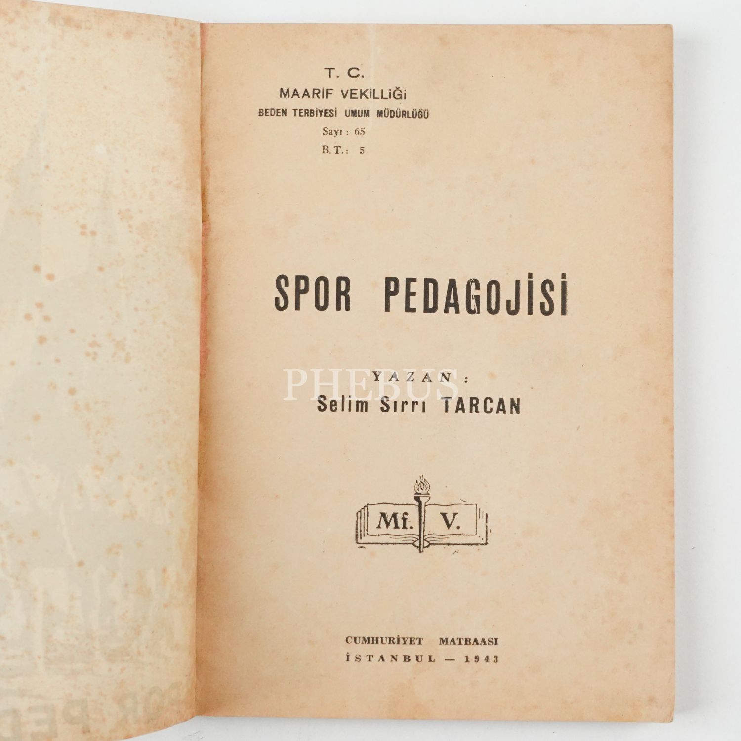SPOR PEDAGOJİSİ, Selim Sırrı Tarcan, 1943, Cumhuriyet Matbaası, 123 sayfa, 14x20 cm...