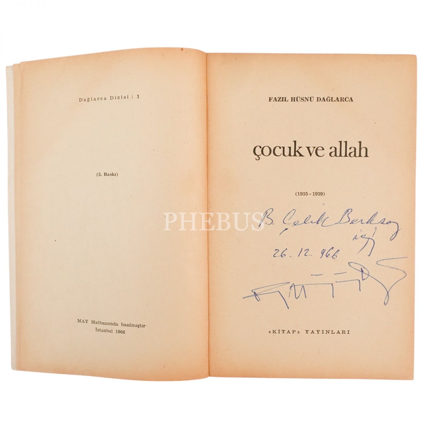 "B. Çelik Berksoy? için." ithafıyla, 26 Aralık 1966 tarihinde imzalanmıştır. *Ön kapağın sağ üst köşesinde kırık mevcuttur.