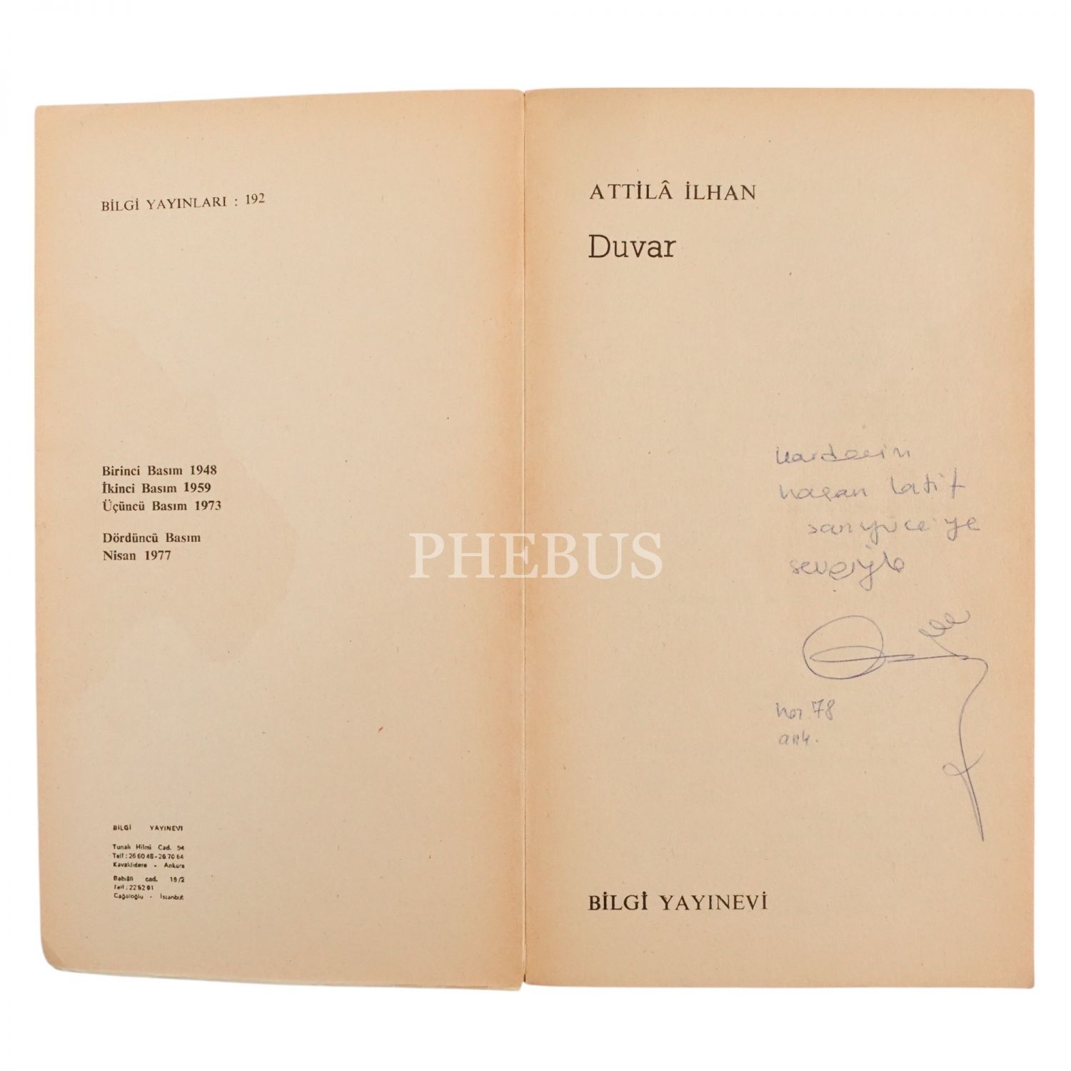 Attilâ İlhan´dan yazar Hasan Latif Sarıyüce´ye ithaflı ve imzalı...