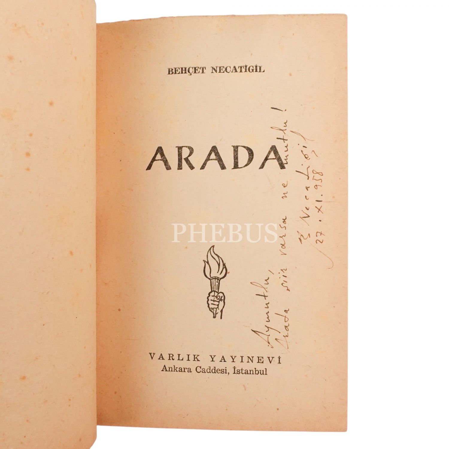 "Aymutlu, arada şiir varsa ne mutlu!" ithafıyla, 27 Ekim 1958 tarihinde imzalanmıştır.