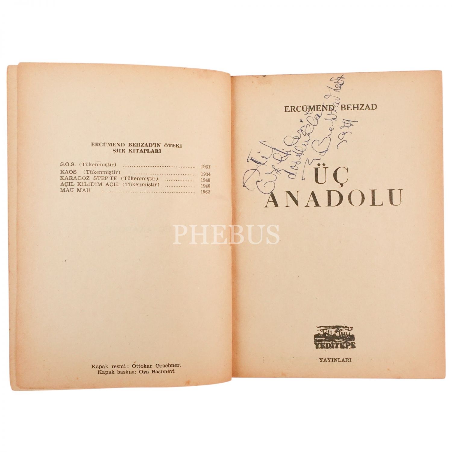 ÜÇ ANADOLU, Ercümend Behzad, 1964, Yeditepe Yayınları, 74 sayfa, 14x20 cm...
