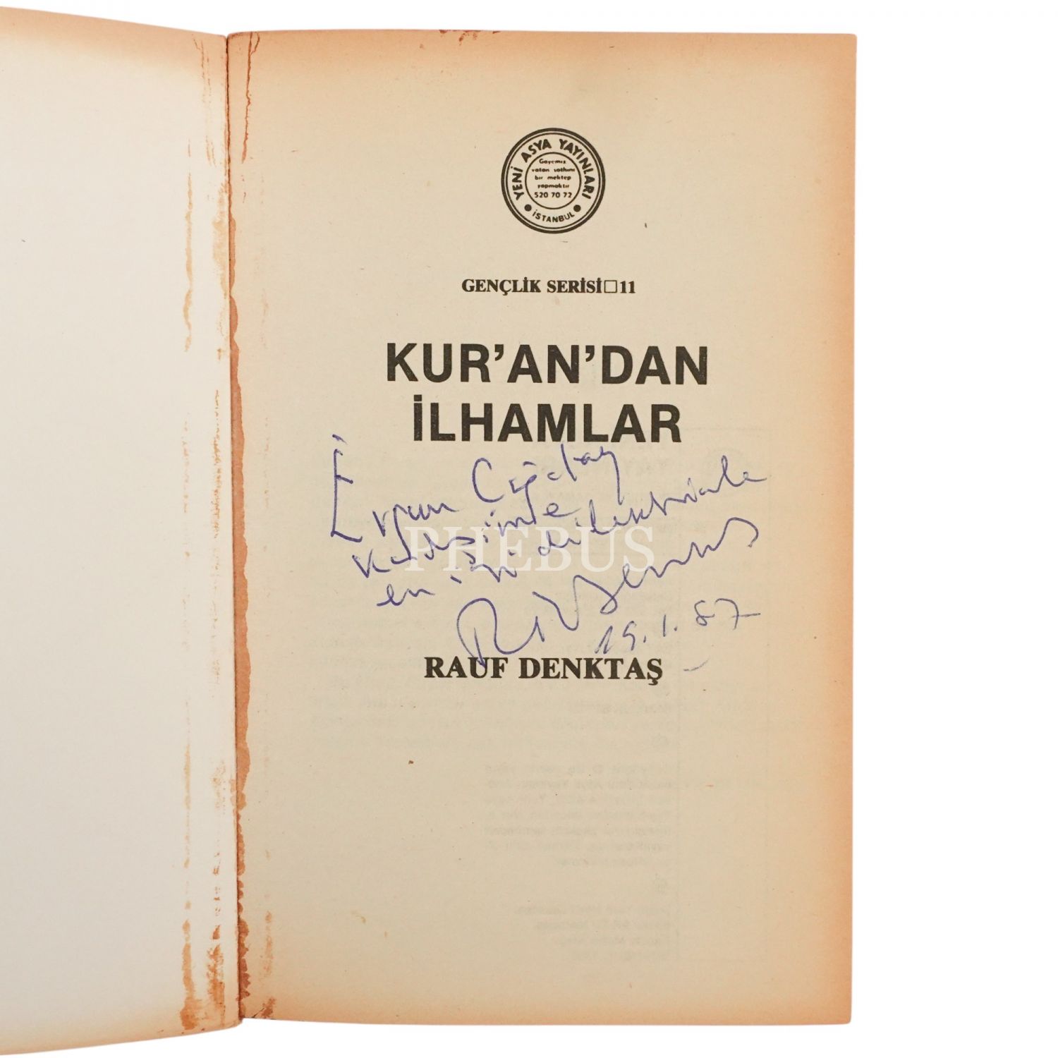 KUR´AN´DAN İLHAMLAR, Rauf Denktaş, 1986, Yeni Asya Yayınları, 137 sayfa, 11x17 cm...