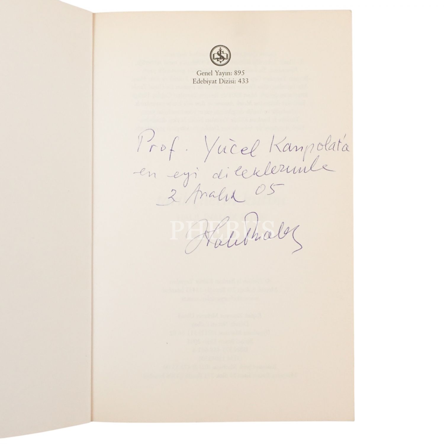 "Prof. Yücel Kanpolat´a en iyi dileklerimle." ithafıyla, 3 Aralık 2005 tarihinde imzalanmıştır.
