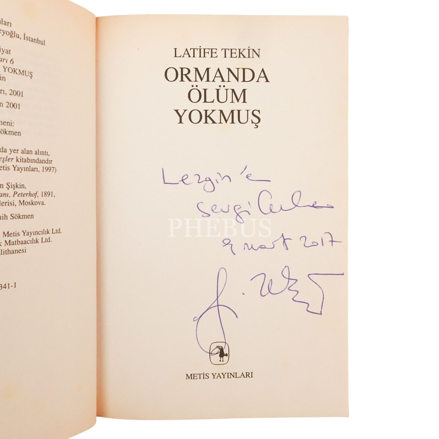 "Sezgin´e sevgilerle." ithafıyla, 9 Mart 2017 tarihinde imzalanmıştır.