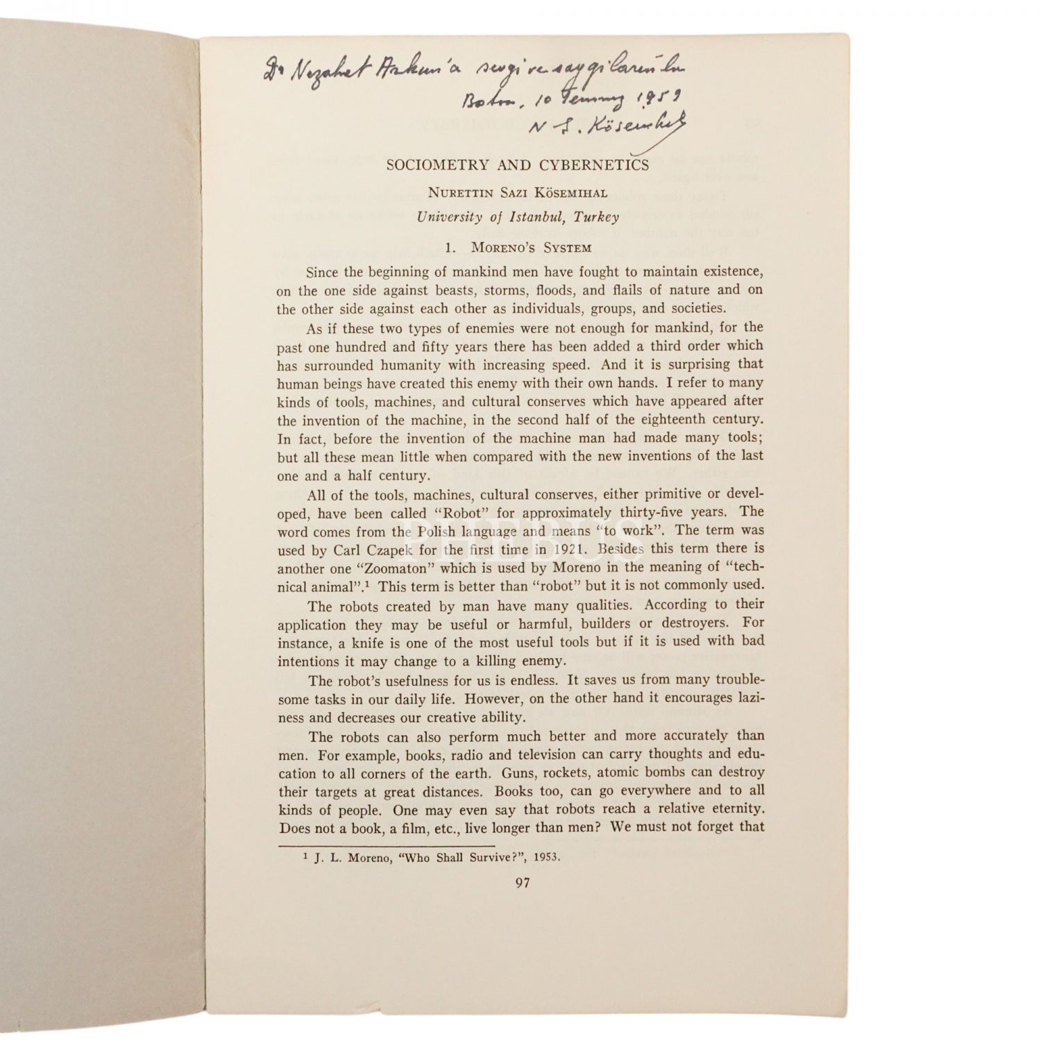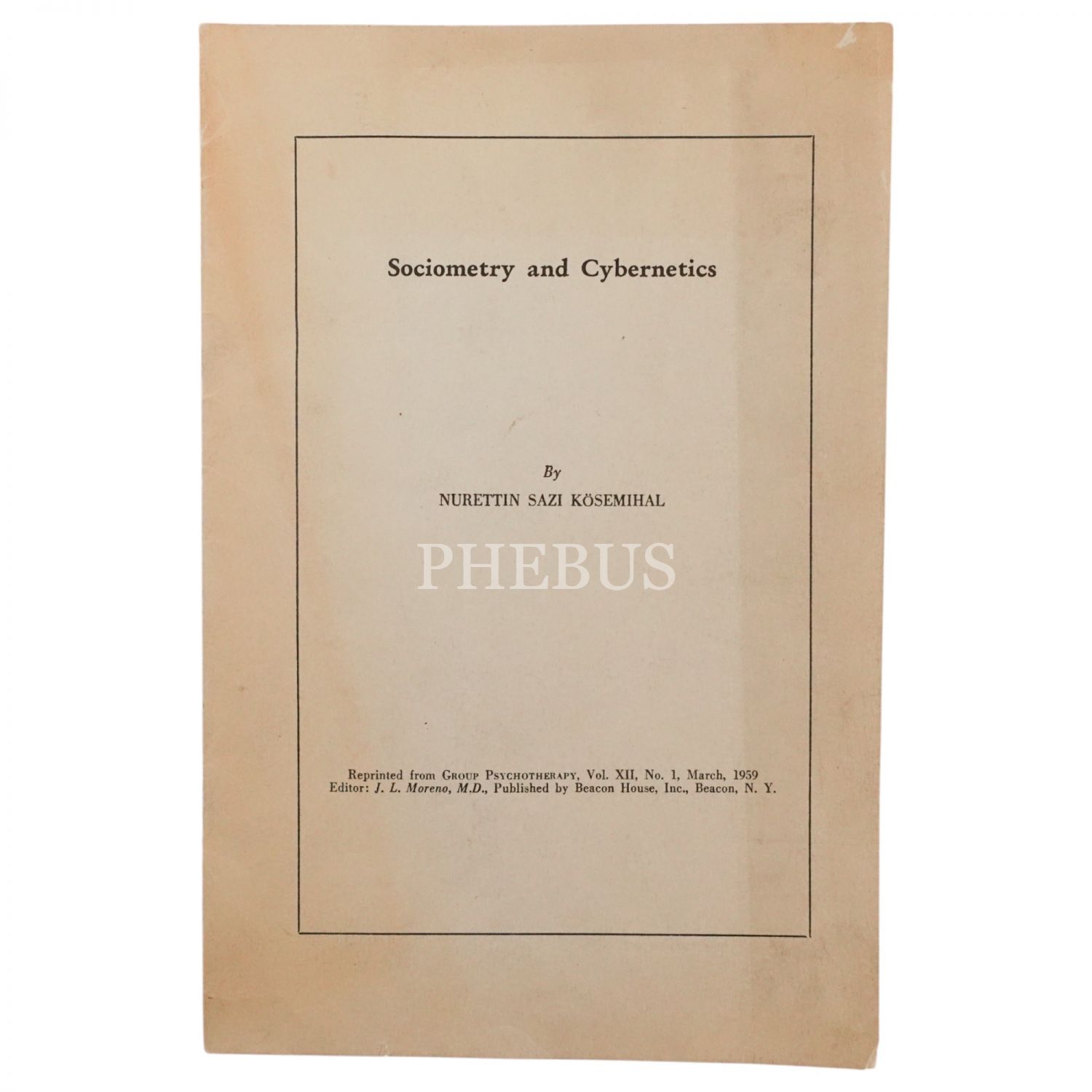 SOCIOMETRY AND CYBERNETICS, Nurettin Sazi Kösemihal, 1959, Beacon House, Inc., Beacon, N.Y., 12 sayfa, 15x23 cm...