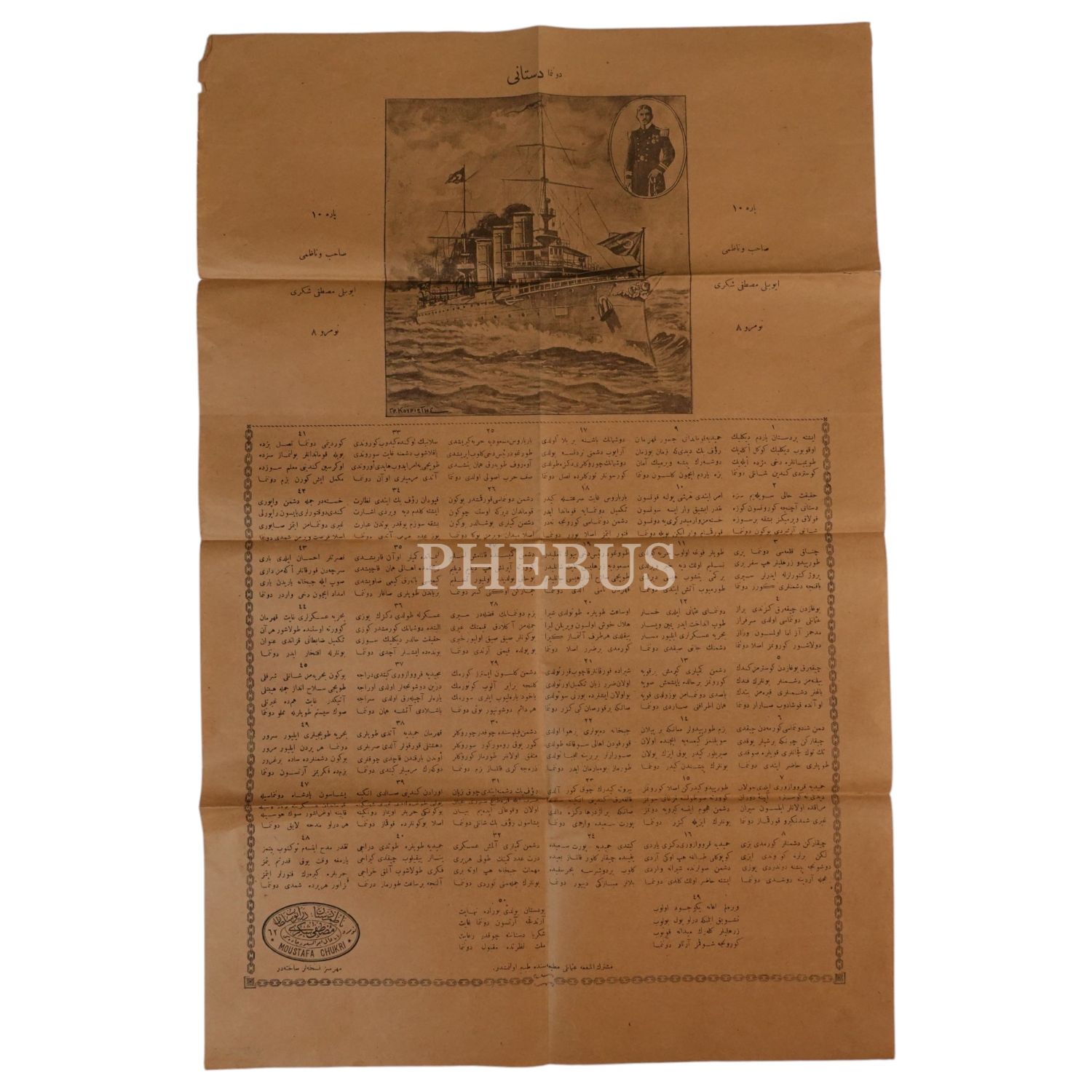 Hamidiye kruvazörü ve "Hamidiye Kahramanı" Rauf Orbay´ın resimlerinin yer aldığı "Donanma Destanı" başlıklı destan, 37x57 cm...
