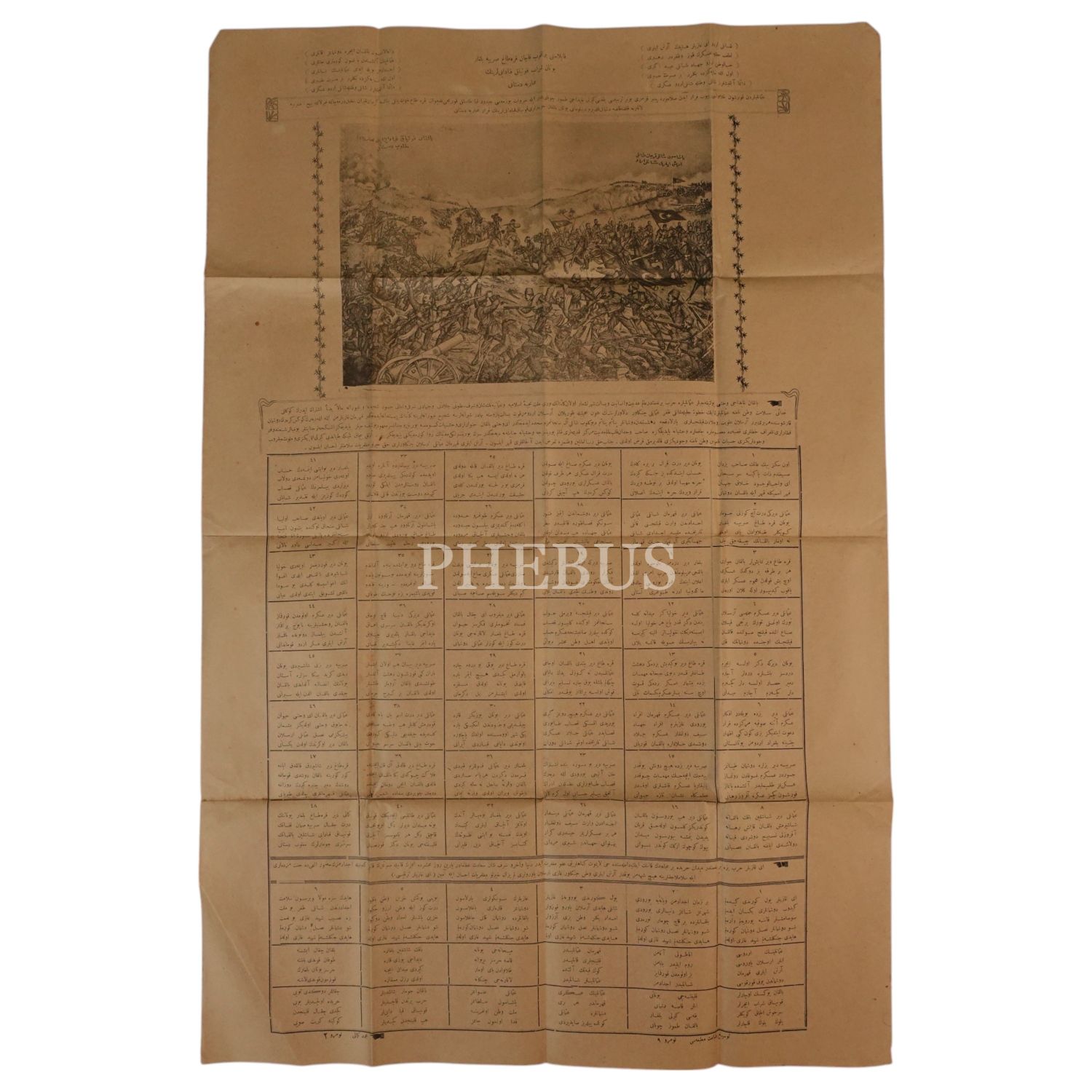 Balkan Savaşı´nı konu alan ve Balkan Savaşı esnasında hücum eden Osmanlı askerlerinin illüstre edildiği "Kaplasını bırakıp kaçan Karadağ - Sırbiye- Bulgar - Yunan Şarap, Konyak Kabadayılarının Muharebe Destanı" başlıklı destan, 75x50 cm...