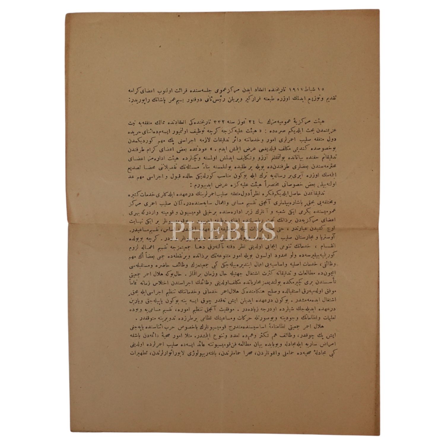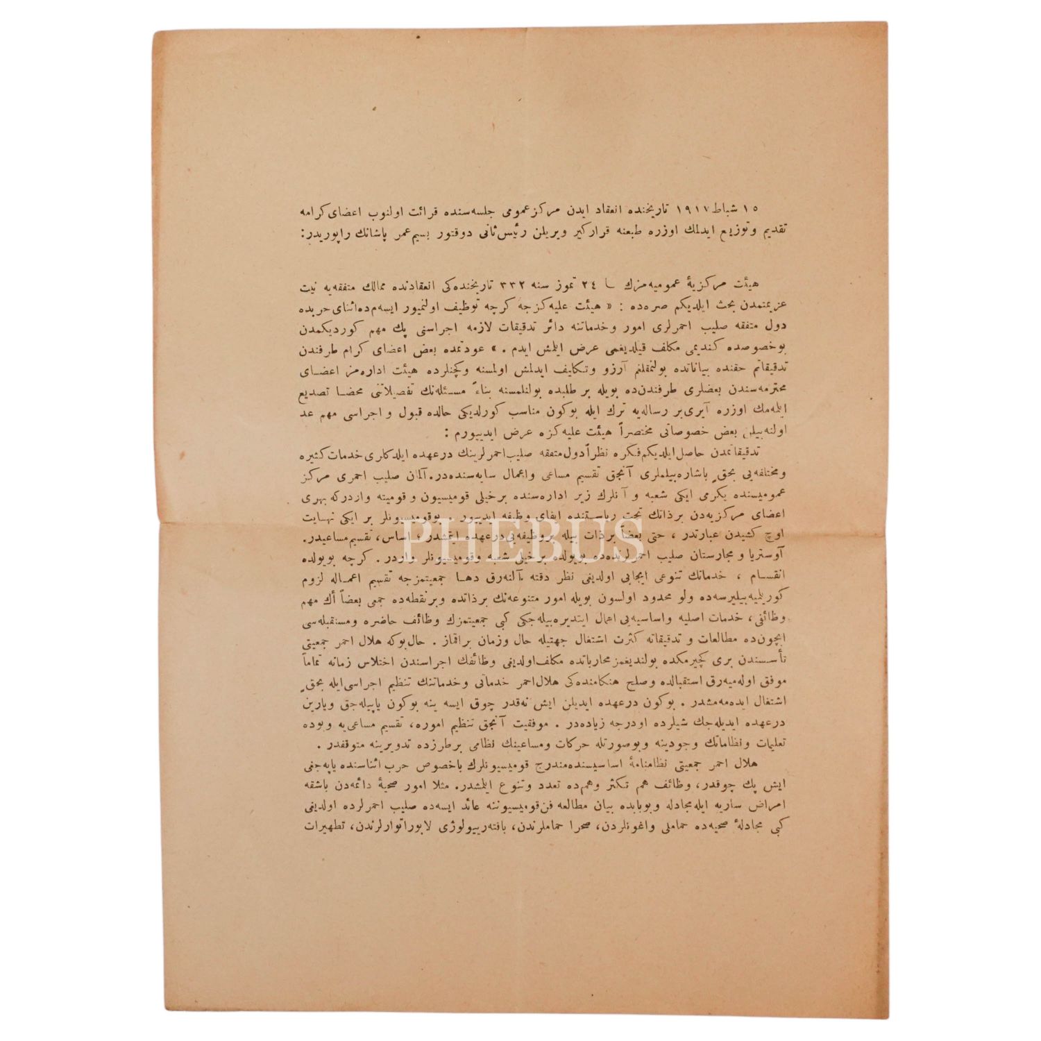 Doktor Besim Ömer (Akalın) Paşa´nın Harb-i Umumi esnasında Kızılay ve Kızılhaç´ın çalışmalarına dair raporu, 4 sayfa, 19x25 cm...