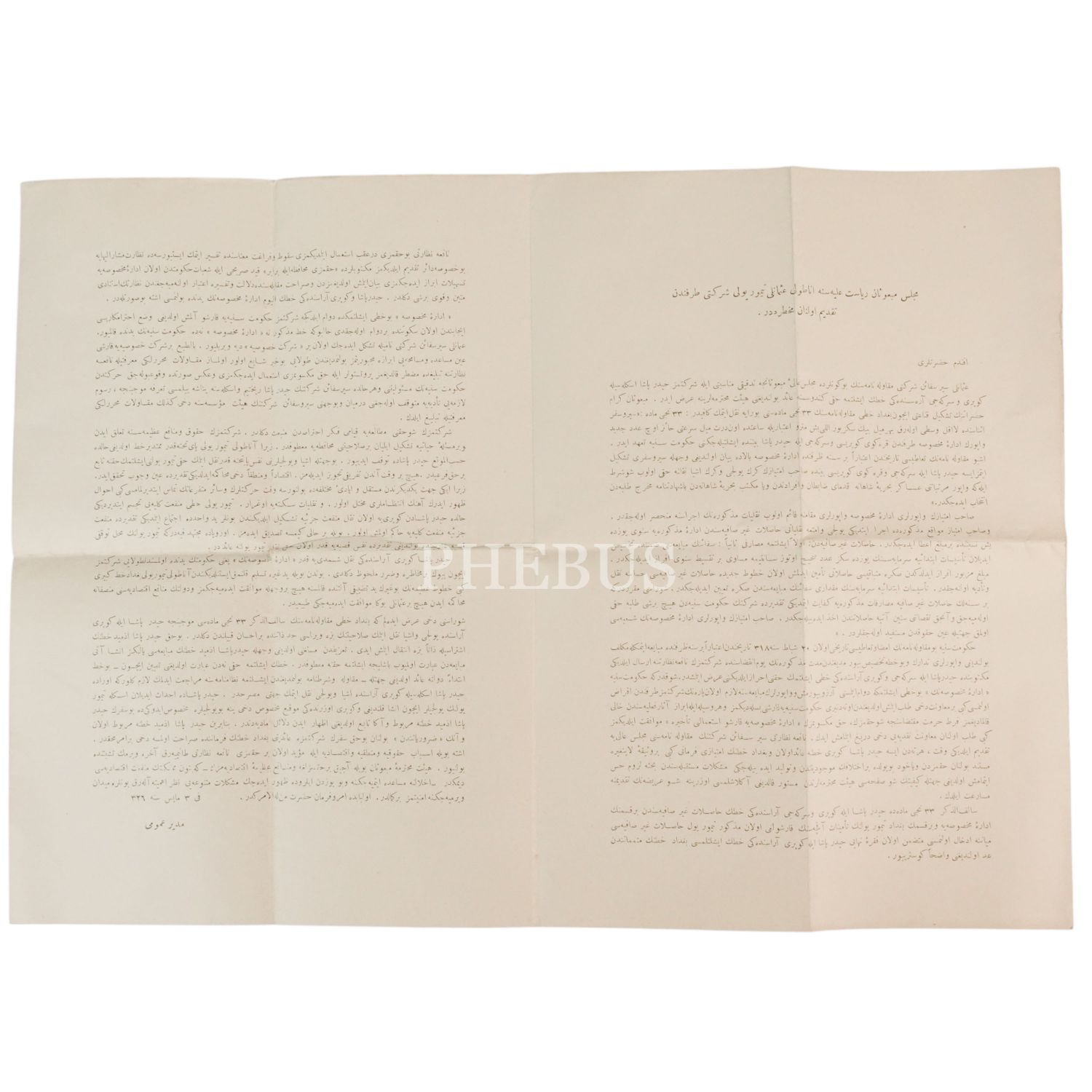 Haydarpaşa - Sirkeci ve Köprü arasındaki vapur işletmesine dair Anadolu-Osmanlı Demiryolu Şirketi tarafından Meclis-i Mebusan´a sunulan layiha, 40x31 cm...