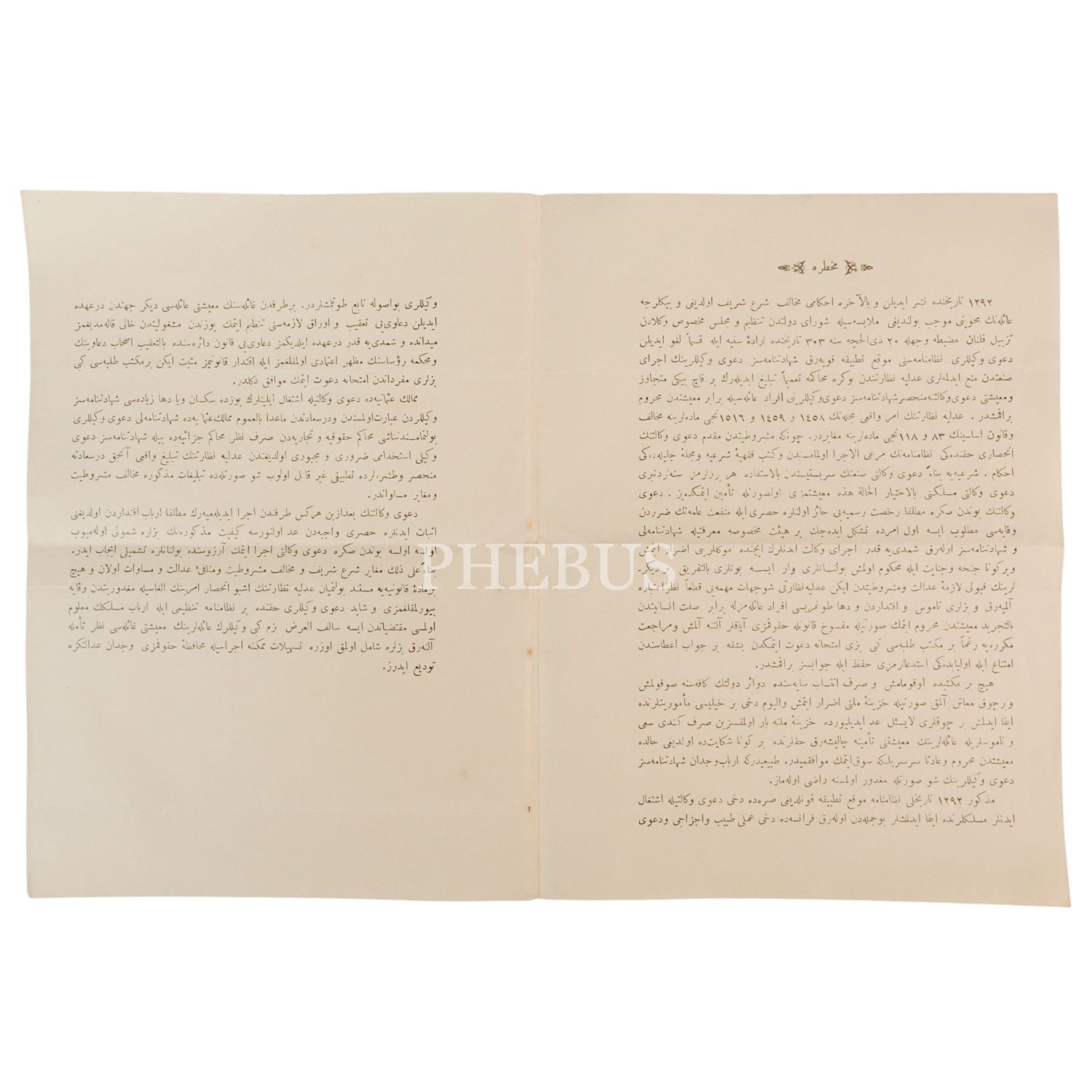 Diplomasız avukatların avukatlıktan men edilmeleri hususunda alınan karara itiraz eden diplomasız avukatların Meclis-i Mebusan´a sundukları layiha, 37x25 cm...