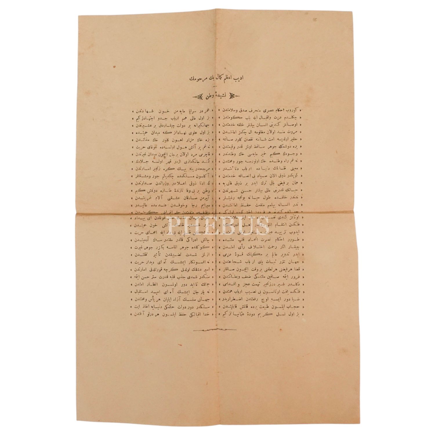 Namık Kemal´in "Neşide-i Vatan" başlıklı şiiri, 26x38 cm...