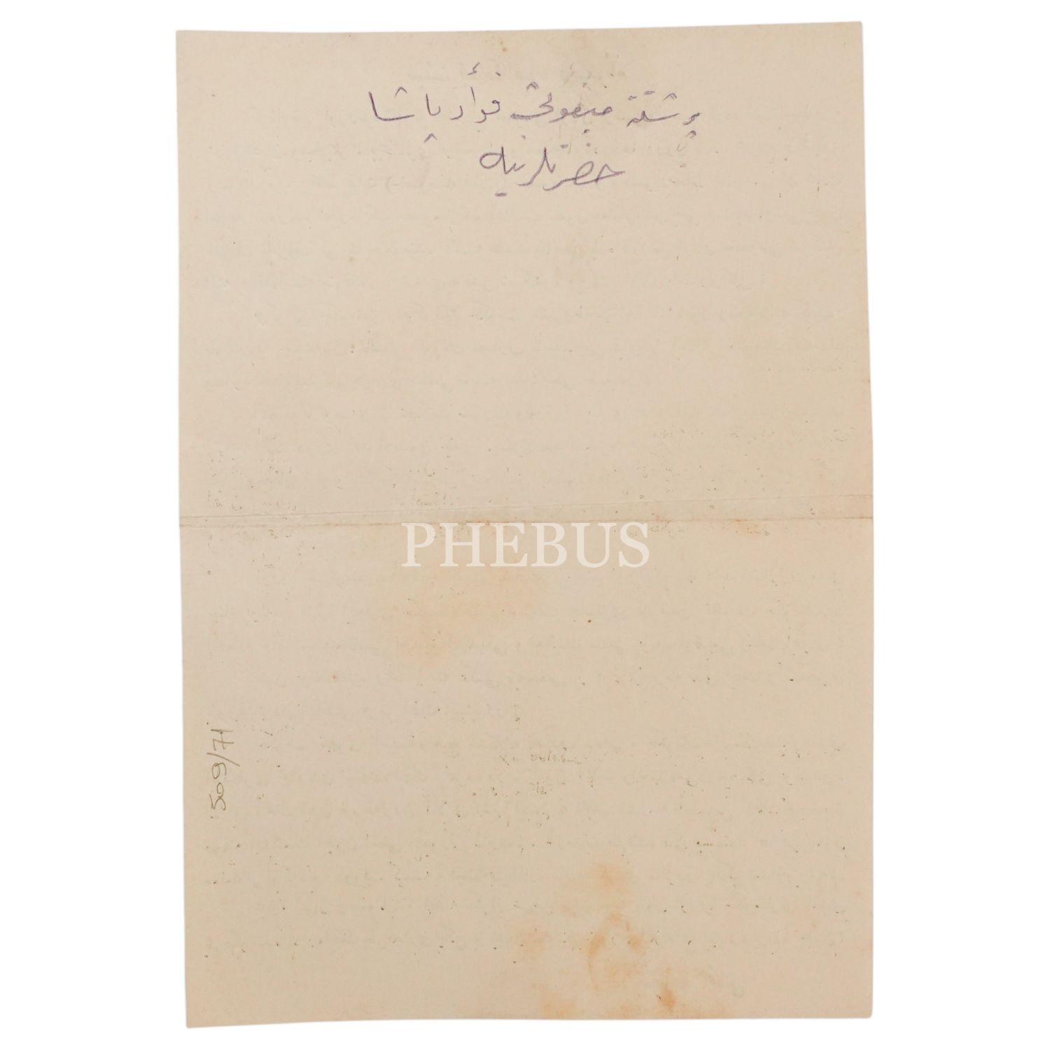 Dilekçenin arka yüzünde, "Priştine Mebusu Fuad Paşa Hazretlerine" yazılıdır.