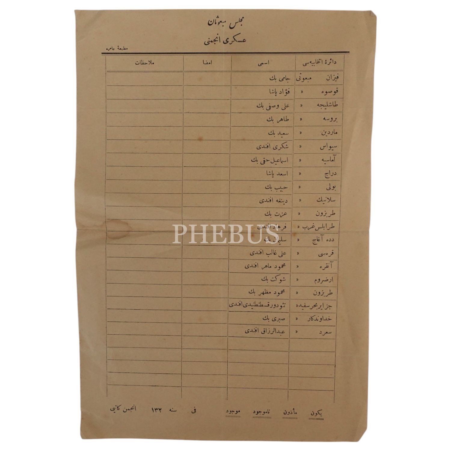 Meclis-i Mebusan Askeri Encümeni üyelerinin isimlerinin yazılı olduğu liste, 18x26 cm...