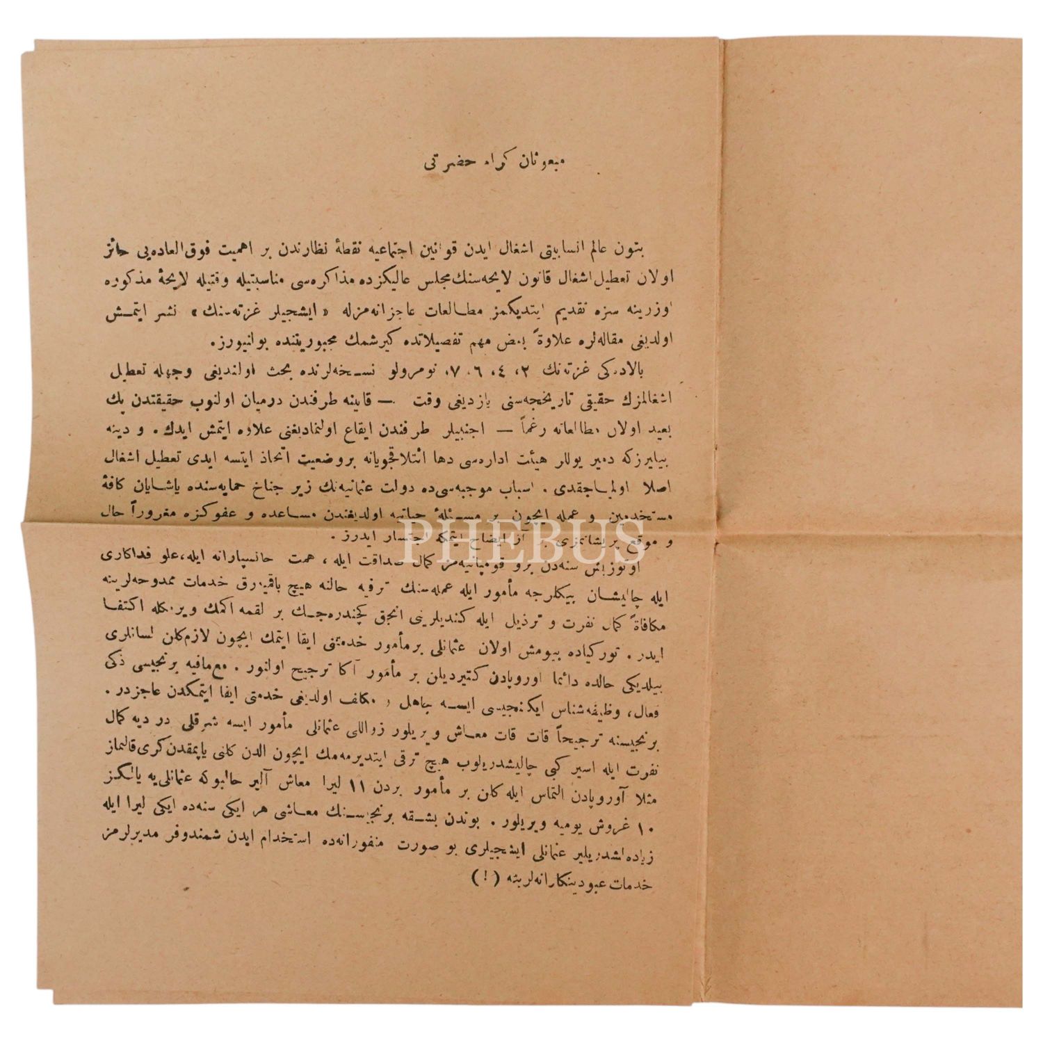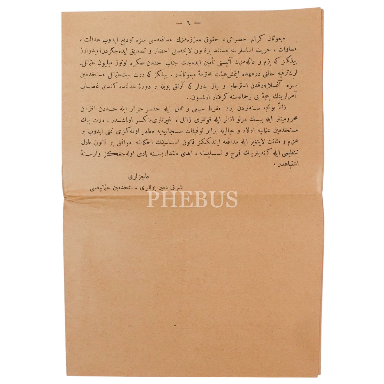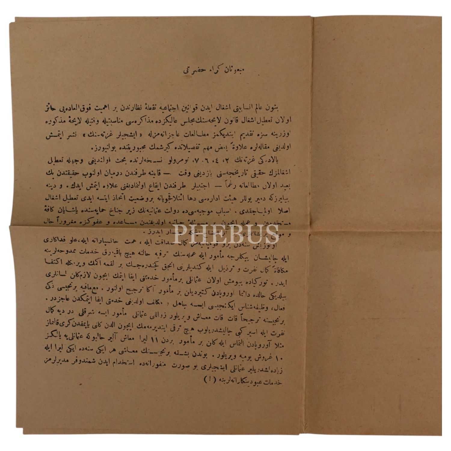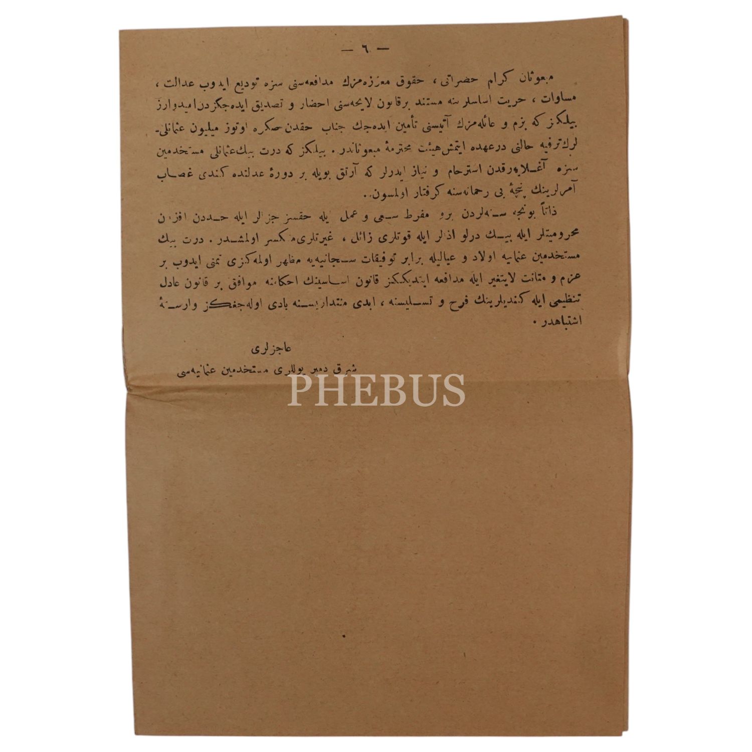 Şark Demiryolları çalışanlarının Meclis-i Mebusan´a sundukları layiha, 6 sayfa, 16x23 cm...