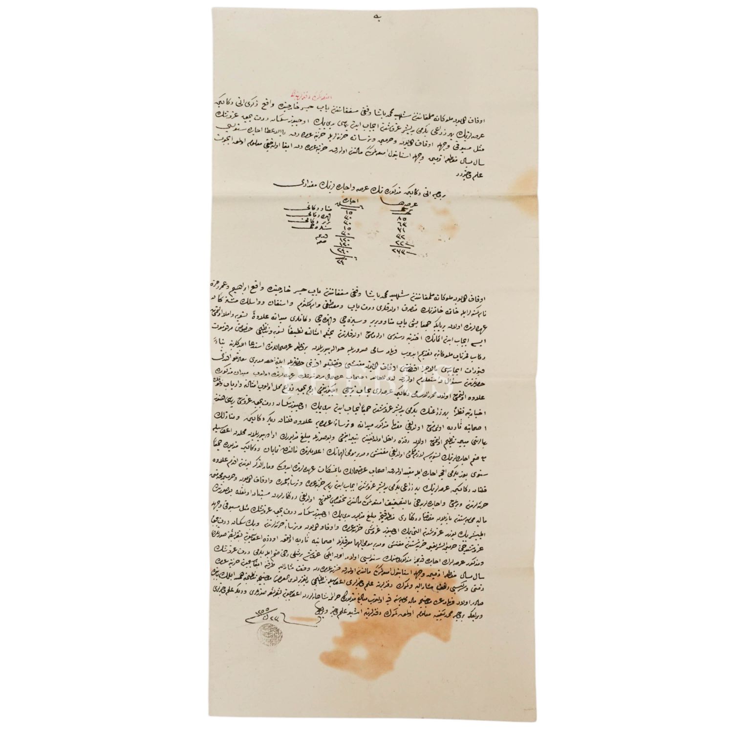 Şehid Mehmed Paşa Vakfı´nın hesabına dair siyakat yazıyla kaleme alınmış hüccet, 18x38 cm...
