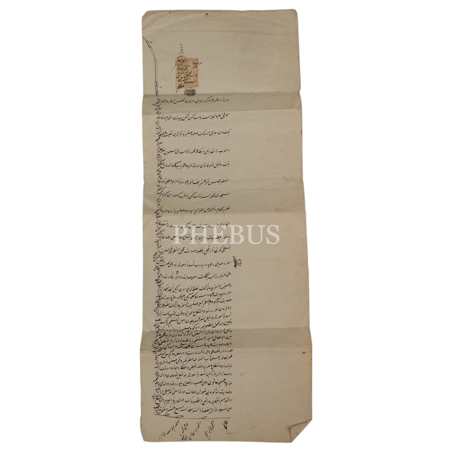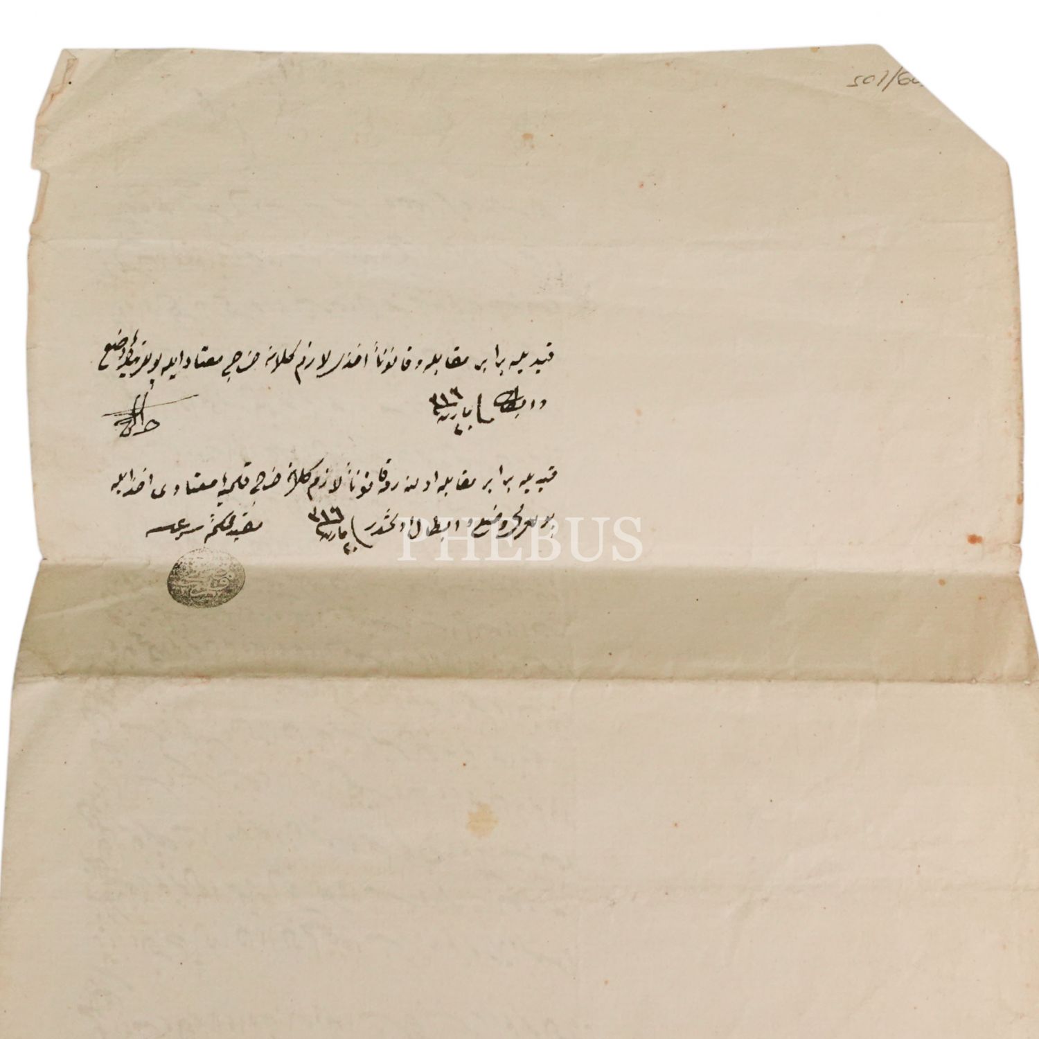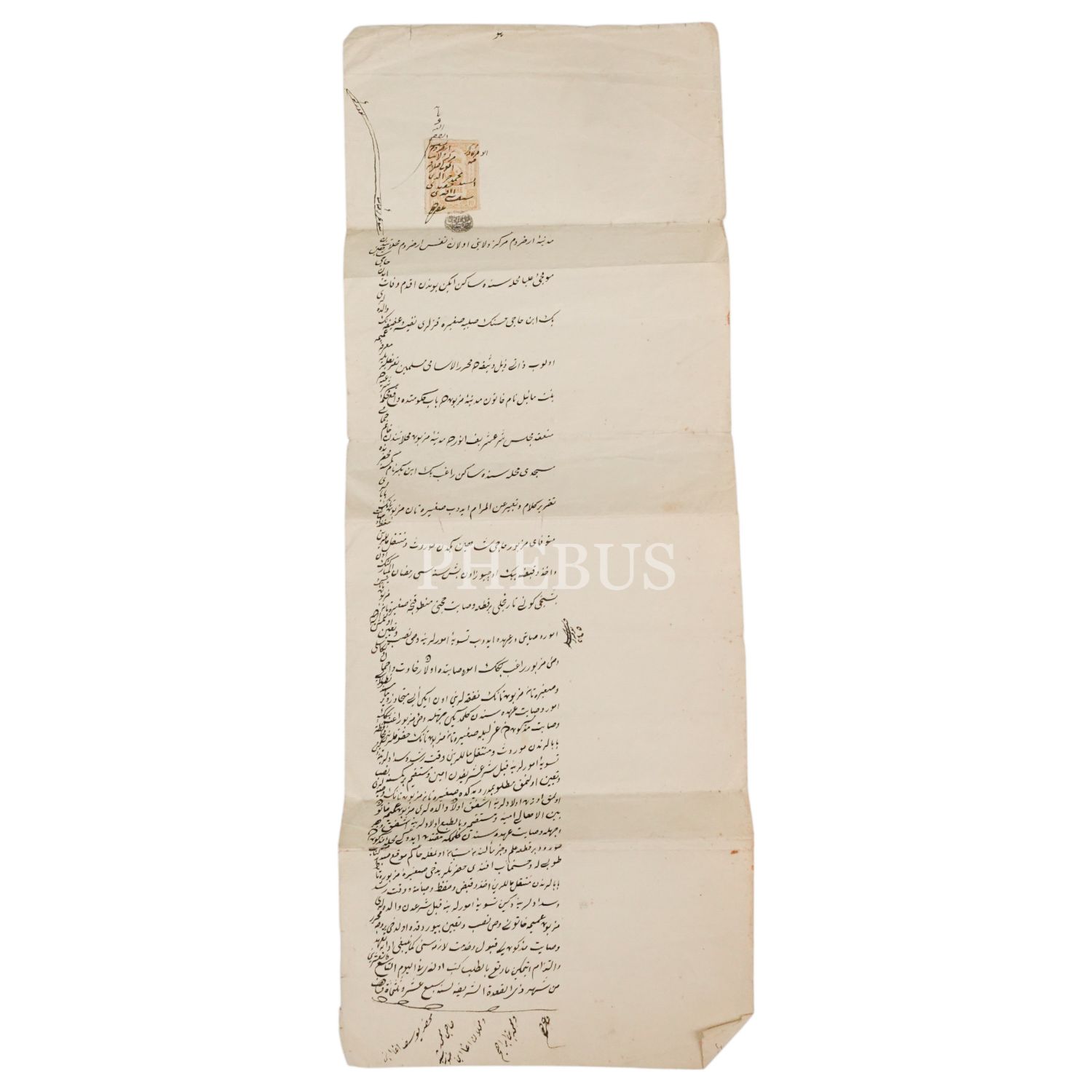 Erzurum´da ikamet eden Hacı Şahin Bey´in vefatı üzerine mal varlığının aile efradı üzerine geçirilmesine dair kaleme alınmış hüccet, 20x55 cm...