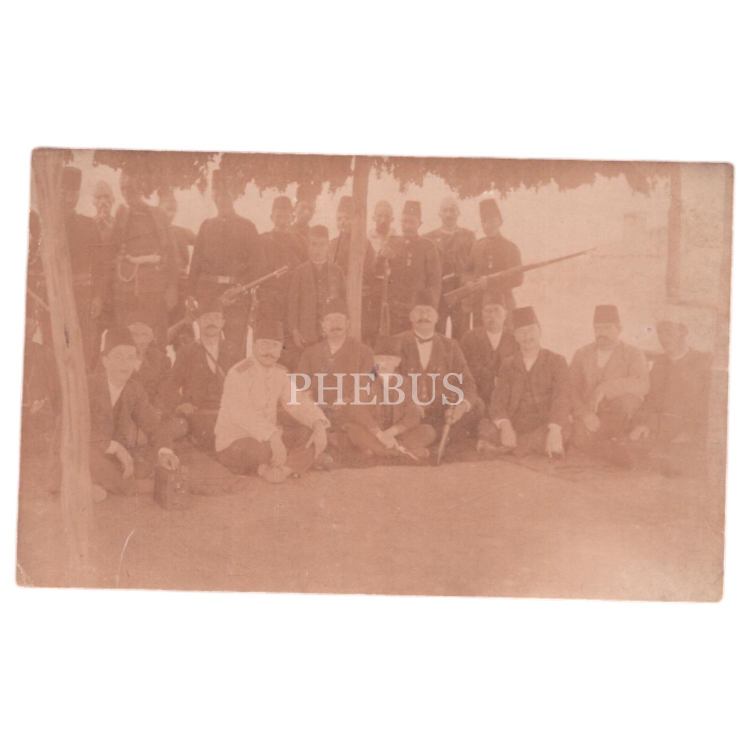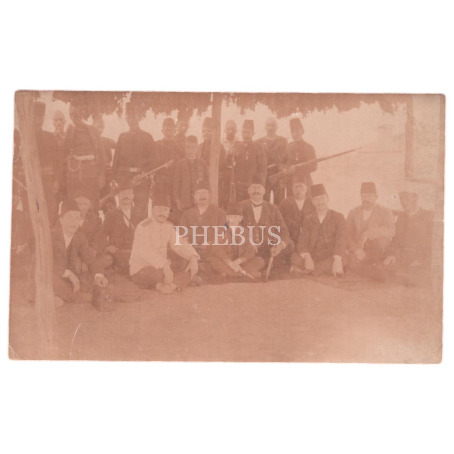 Osmanlı subayları ve halkın ileri gelenlerinin bulunduğu bir toplantıdan alınmış hatıra fotoğrafı, 14x9 cm...