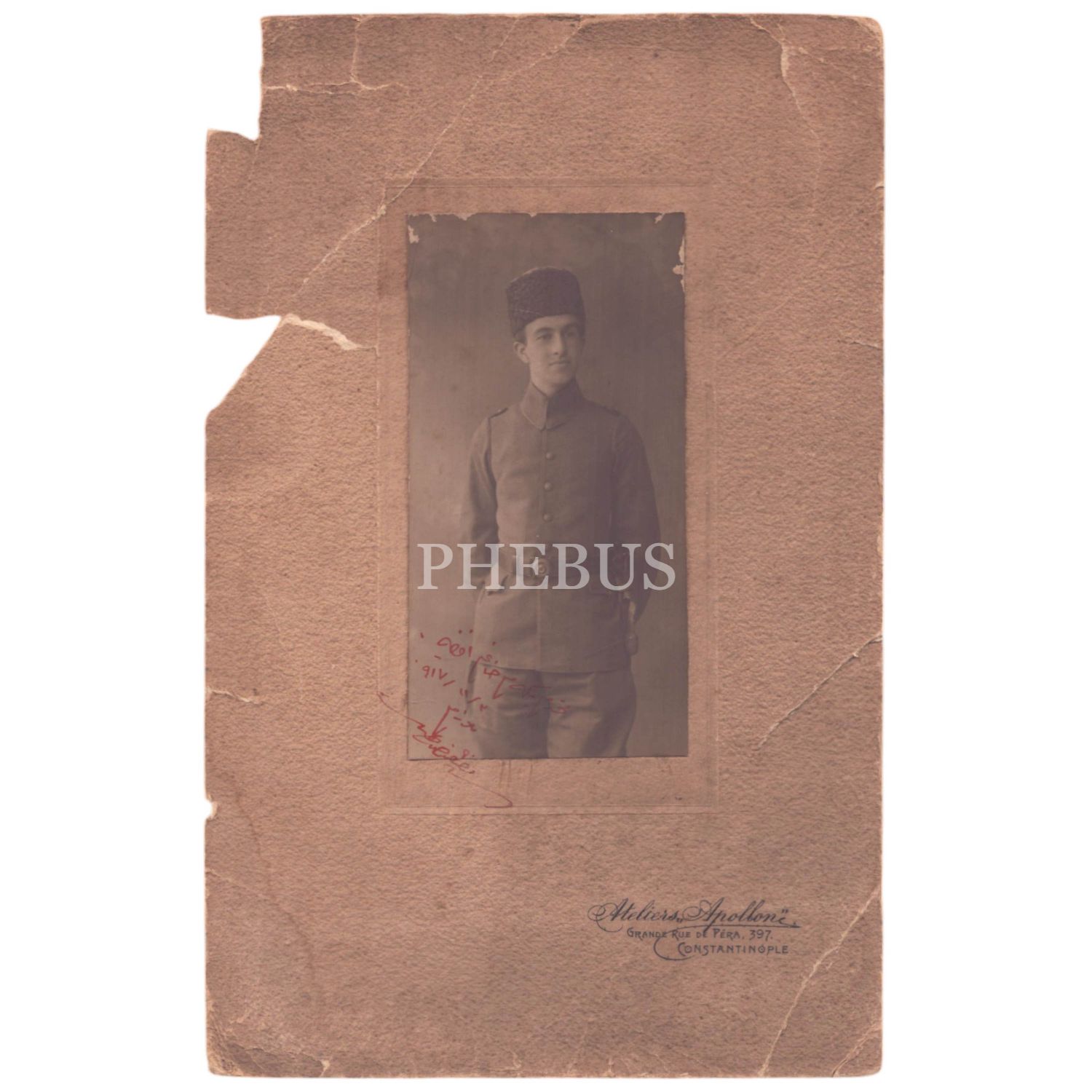 Bir Osmanlı subayının ithaflı ve imzalı stüdyo hatıra fotoğrafı, "Atelier Apollone - Constantinople", 17x27 cm...