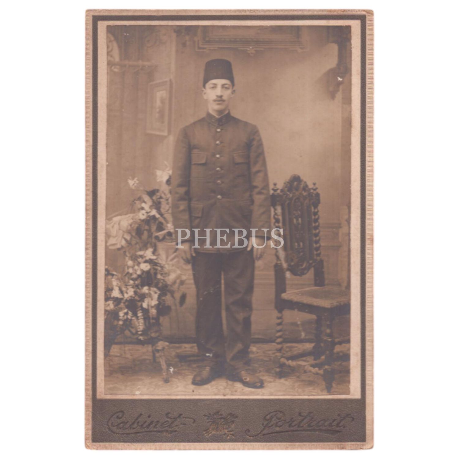 Askeri okul öğrencisinin üniformasıyla çektirdiği stüdyo hatıra fotoğrafı, 11x17 cm...