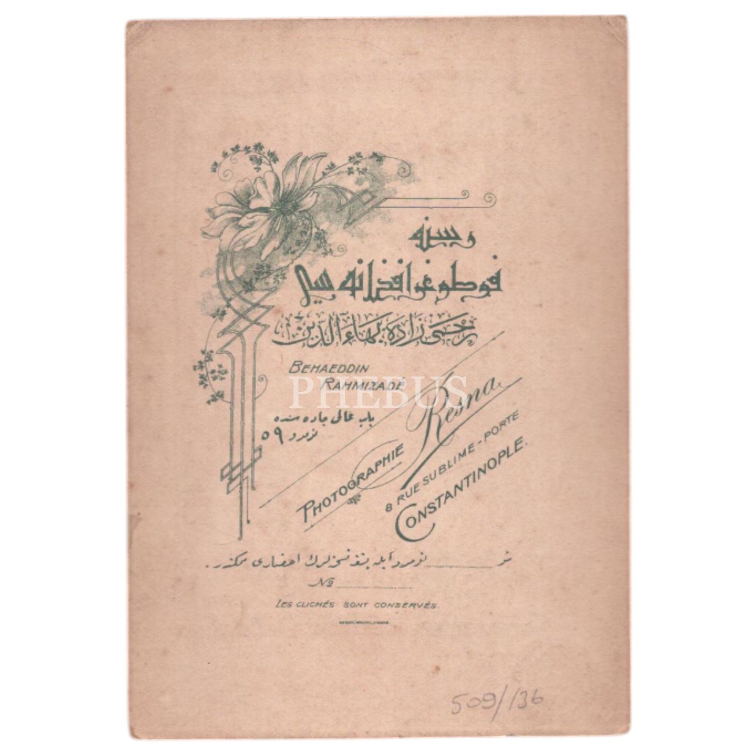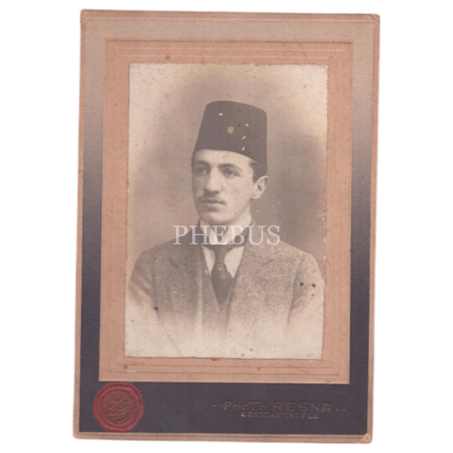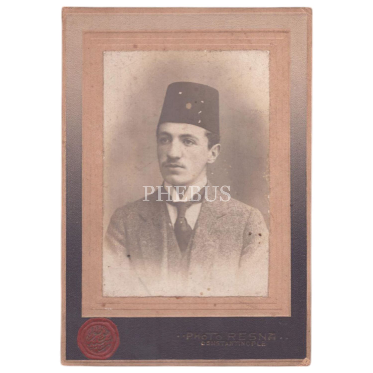 Şık giyimli bir beyefendinin stüdyo hatıra fotoğrafı, "Resne Fotoğrafhanesi - Constantinople", 10x14 cm...