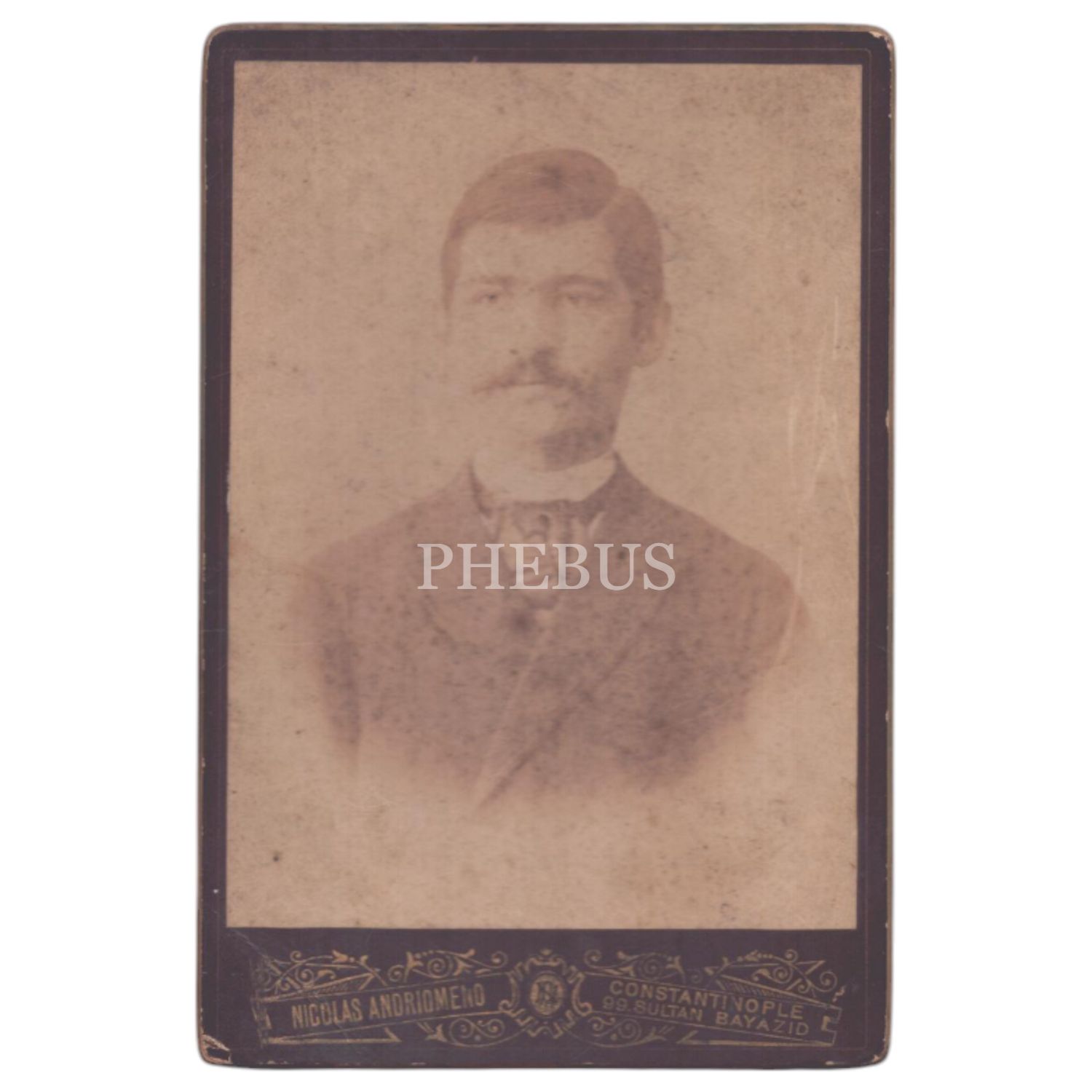 Şık giyimli beyefendinin stüdyo hatıra fotoğrafı, 14x9 cm...