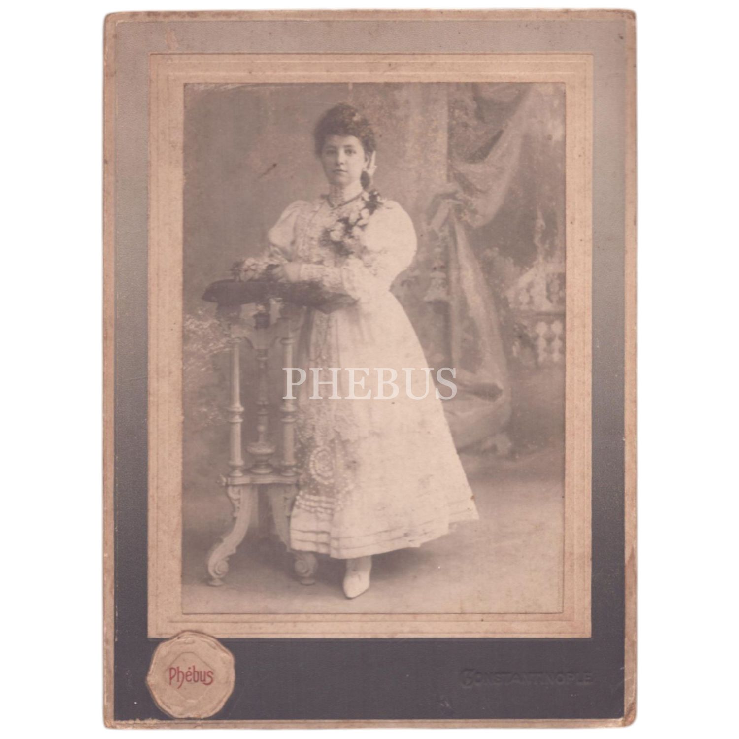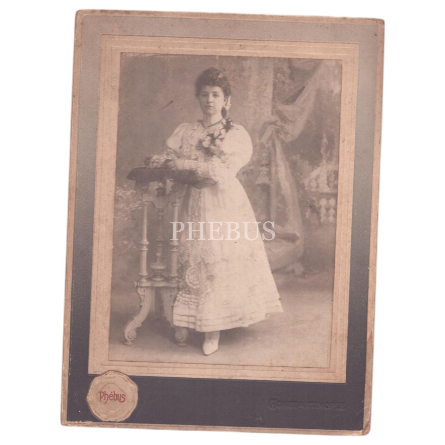 Osmanlı döneminden gayrimüslim bir hanımefendinin Phebus Fotoğrafhanesi´nde aldırdığı hatıra fotoğrafı, 14x19 cm...