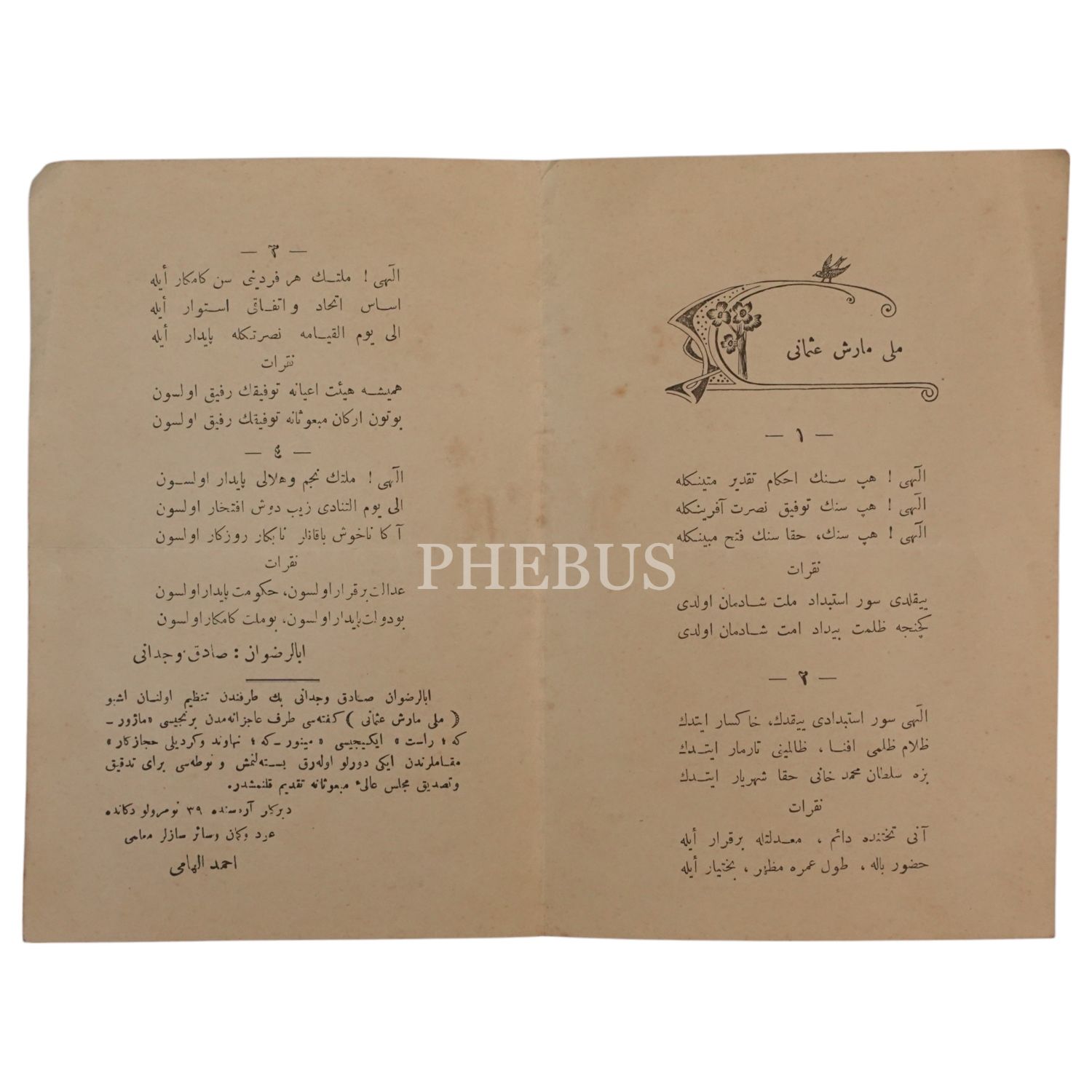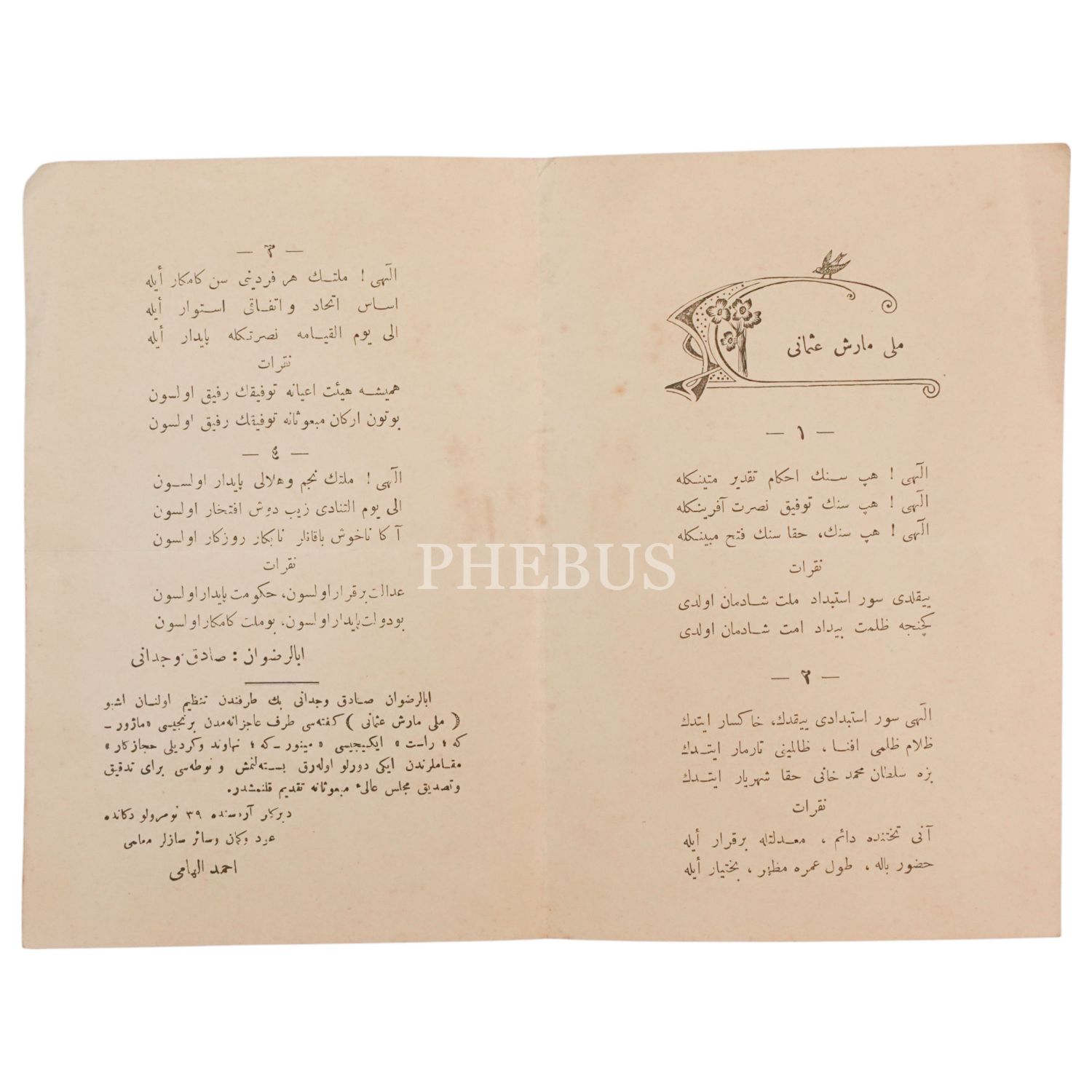 Ahmed İlhami Efendi´nin kaleme aldığı Milli Marş-ı Osmani, 25x19 cm...