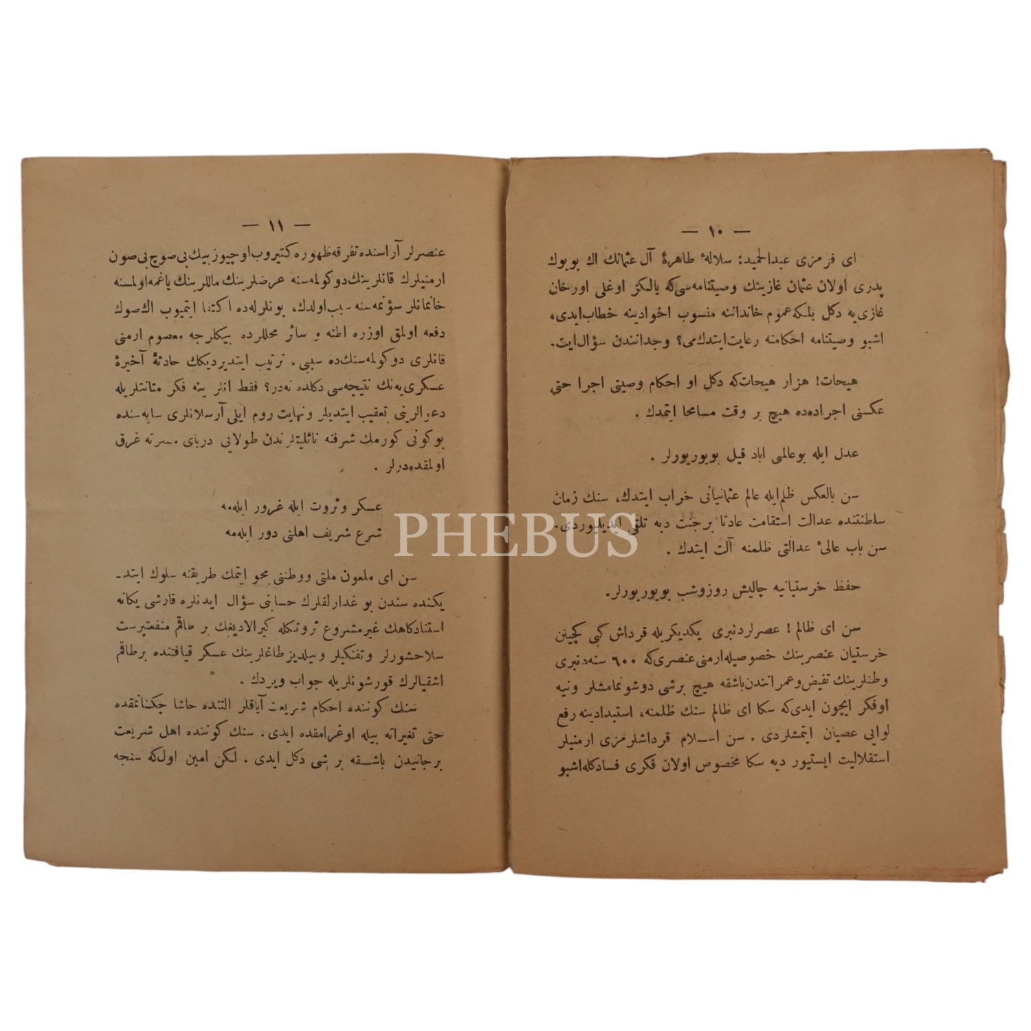 ŞERİAT HUZURUNDA KIRMIZI ABDÜLHAMİD, H. S., 1327, Matbaa-i Jirar (Keteon), 13 sayfa, 13x19 cm...