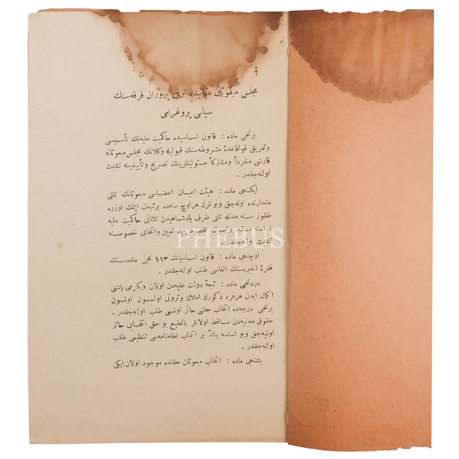 MECLİS-İ MEBUSAN OSMANδDE TERAKKİ PERVARAN FIRKASI´NIN SİYASİ PROGRAMI, 7 sayfa, 16x23 cm...