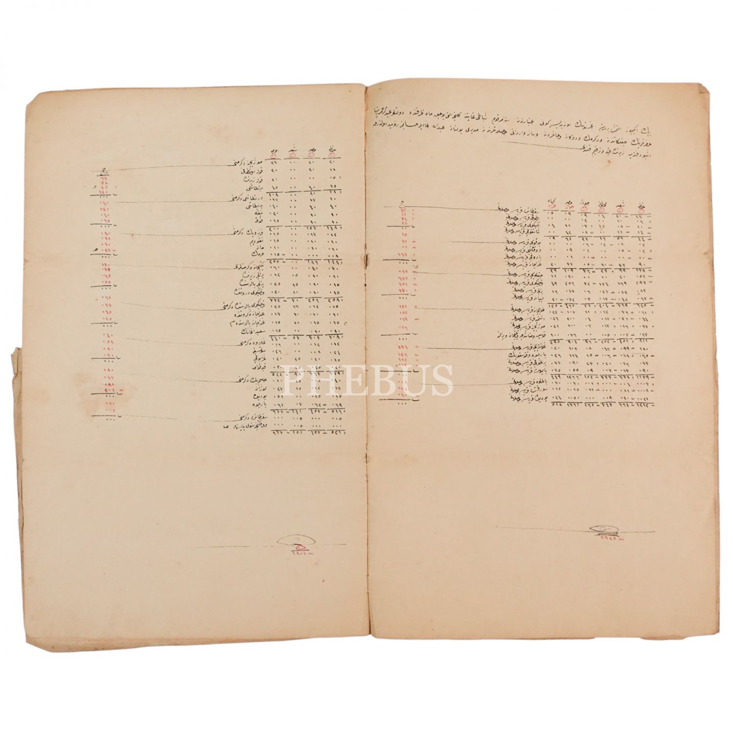 Abdurrahman Galip Paşa´nın Priştine sancağında mutasarrıfı olduğu çiftlik, değirmen ve dükkanın siyakat yazı ile kaleme alınmış hesap defteri, 28 sayfa, 22x36 cm...