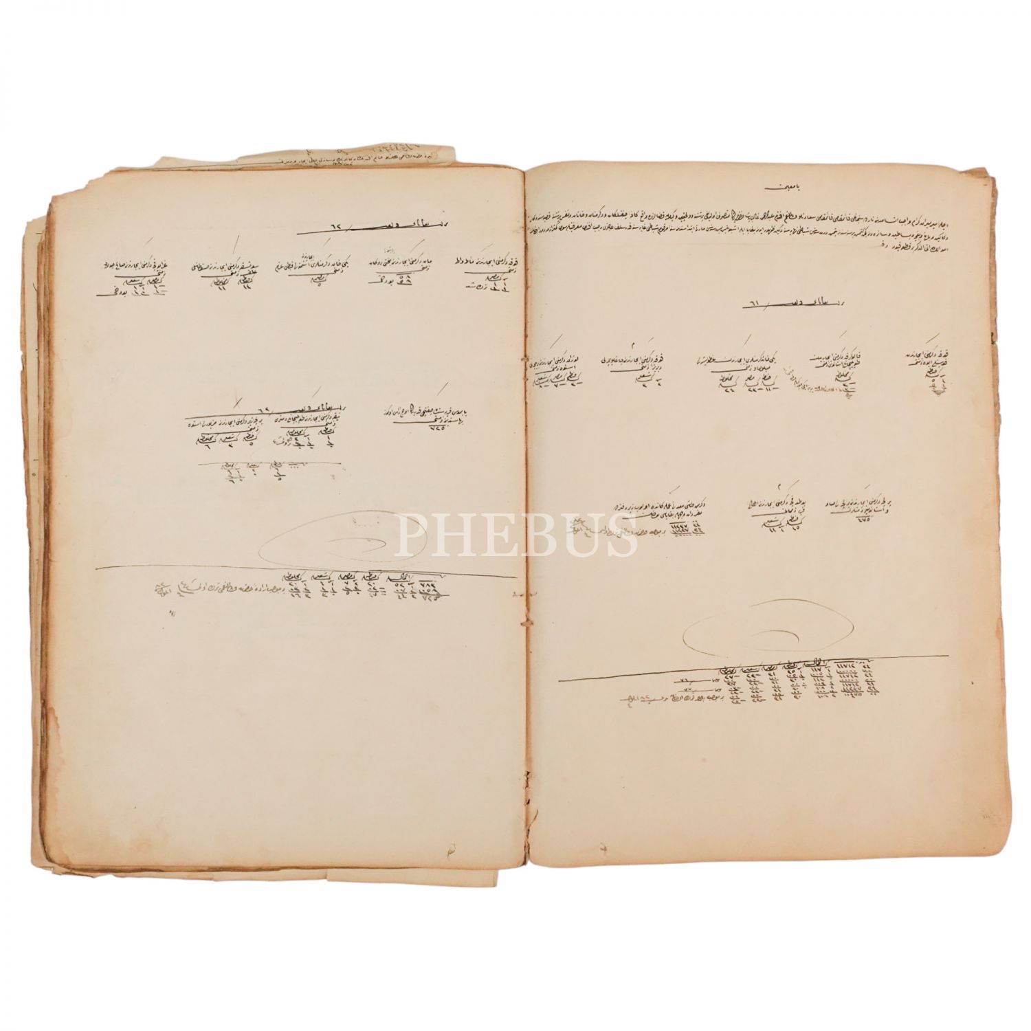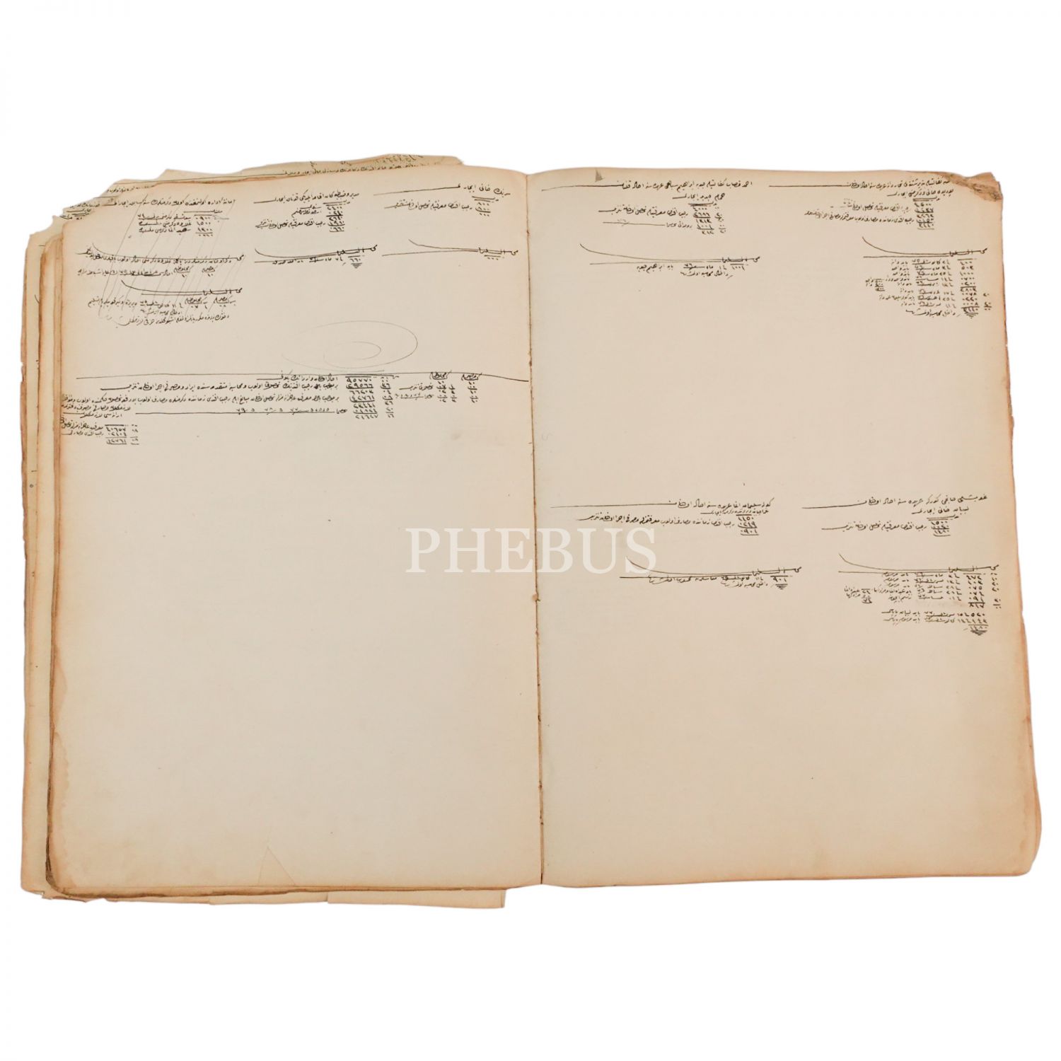 Abdurrahman Galip Paşa´nın Priştine sancağında mutasarrıfı olduğu dükkan, çiftlik, bağ, bostan gibi işletmelerin siyakat yazı ile kaleme alınmış hesap defteri, 25x36 cm...
