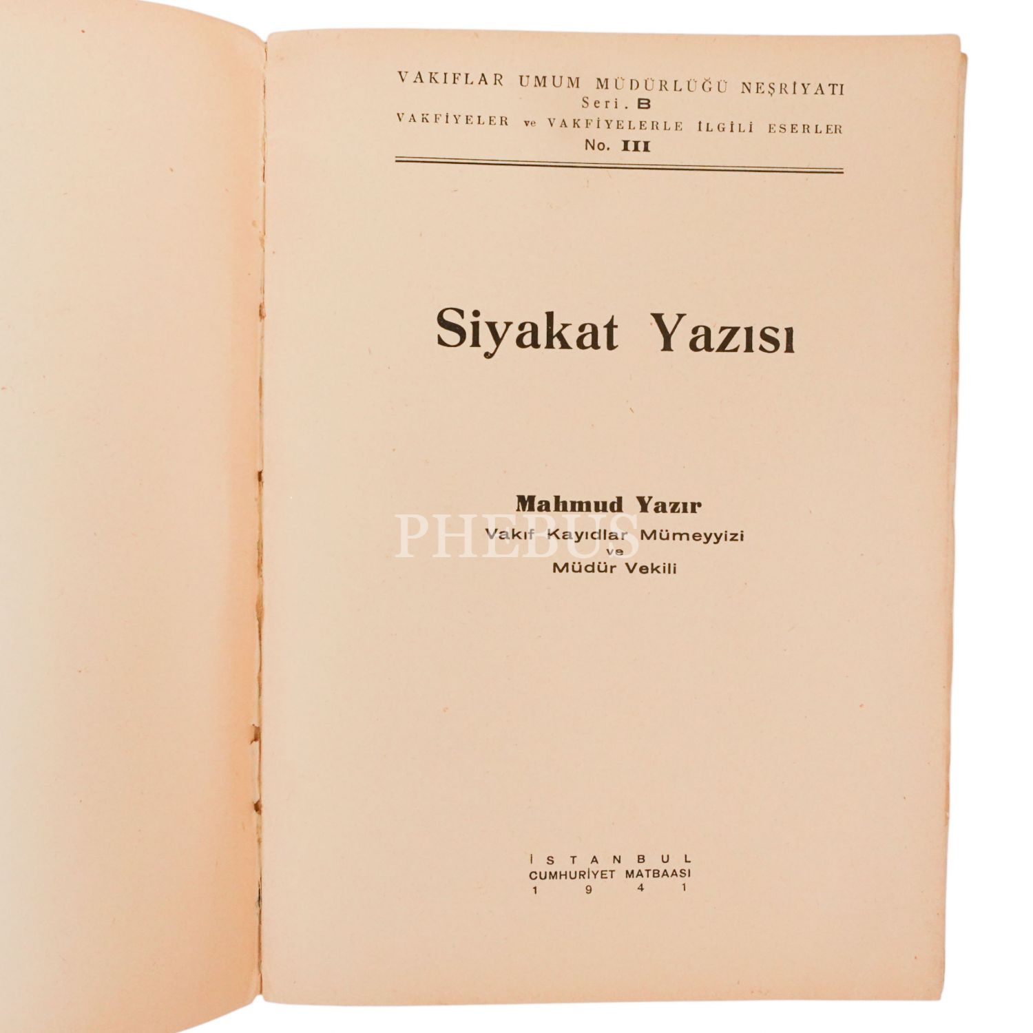 SİYAKAT YAZISI, Mahmud Yazır, 1941, Cumhuriyet Matbaası, 72 sayfa, 20x14 cm...